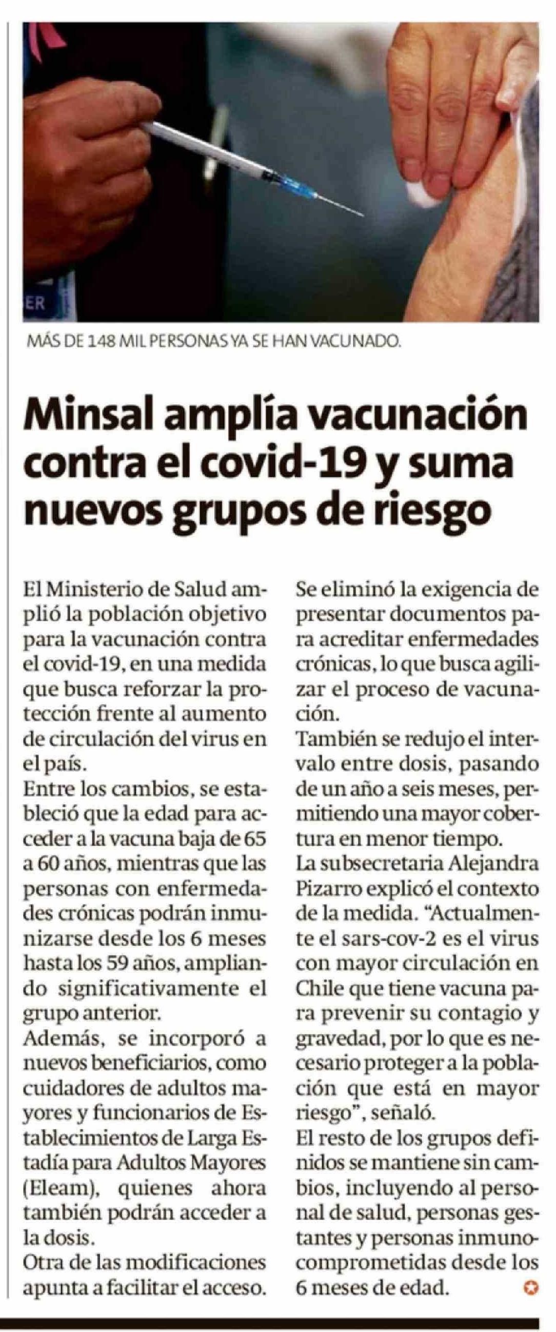 Título: Minsal amplía vacunación contra el covid-19 y suma nuevos grupos de riesgo