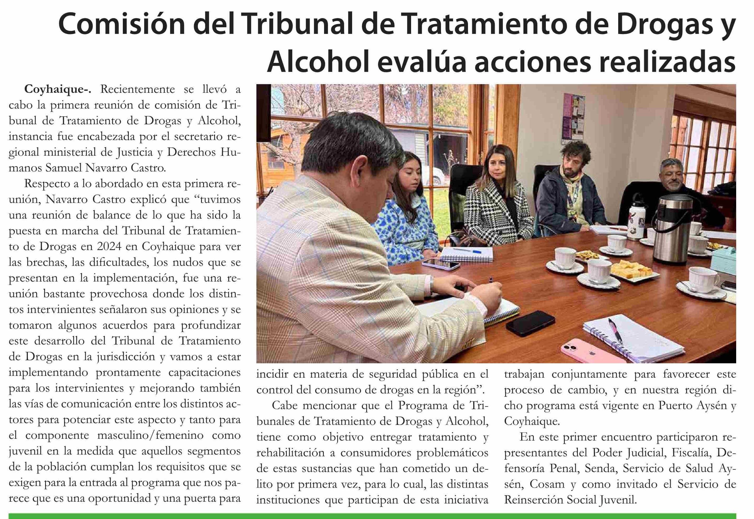 | Título: | Comisión del Tribunal de Tratamiento de Drogas y Alcohol evalúa acciones realizadas |