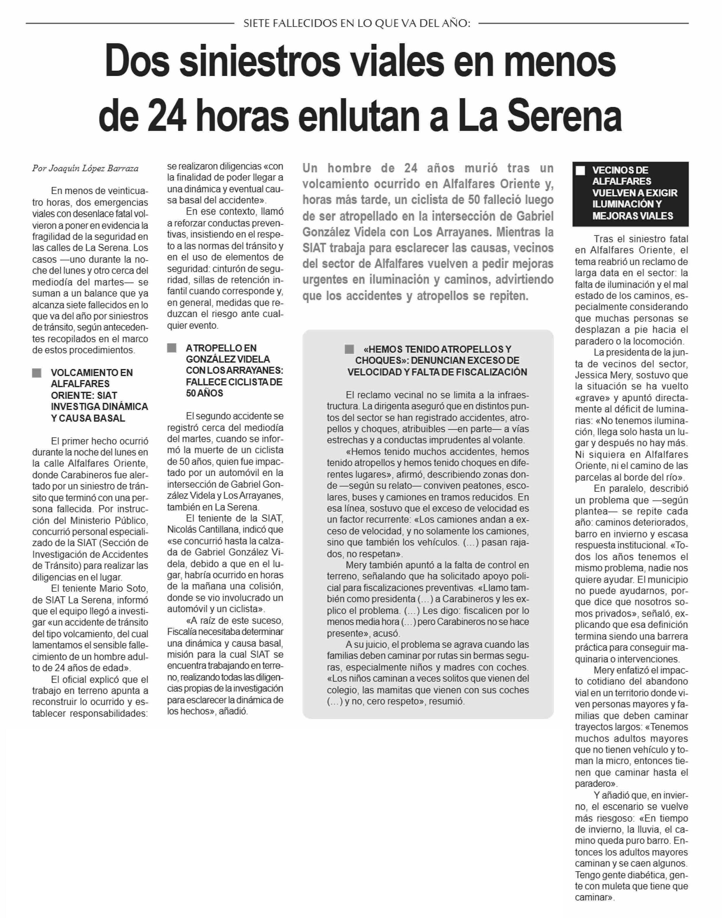Título: Dos siniestros viales en menos de 24 horas enlutan a La Serena