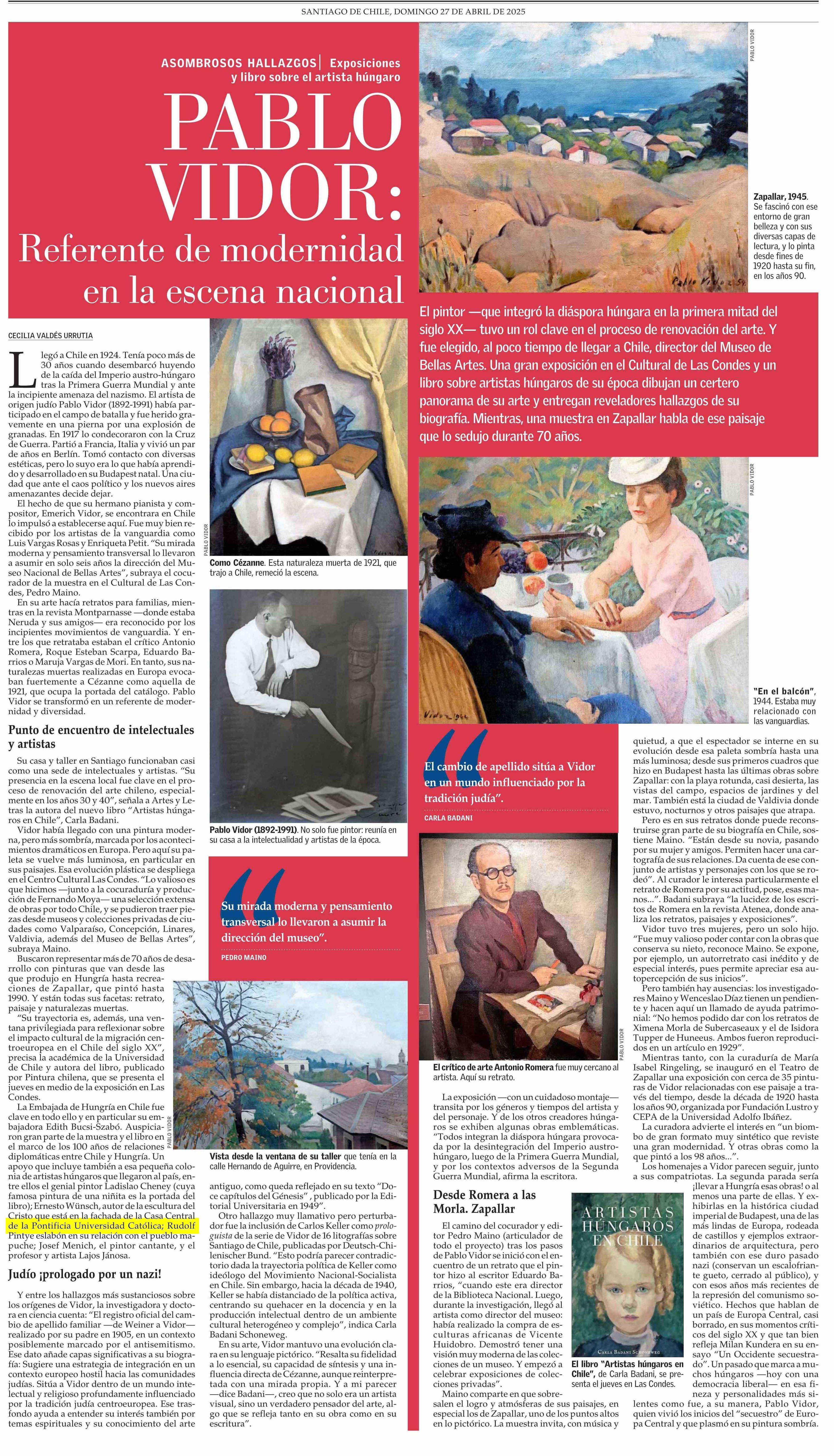 PABLO VIDOR: Referente de modernidad en la escena nacional 27-04-2025 El Mercurio |