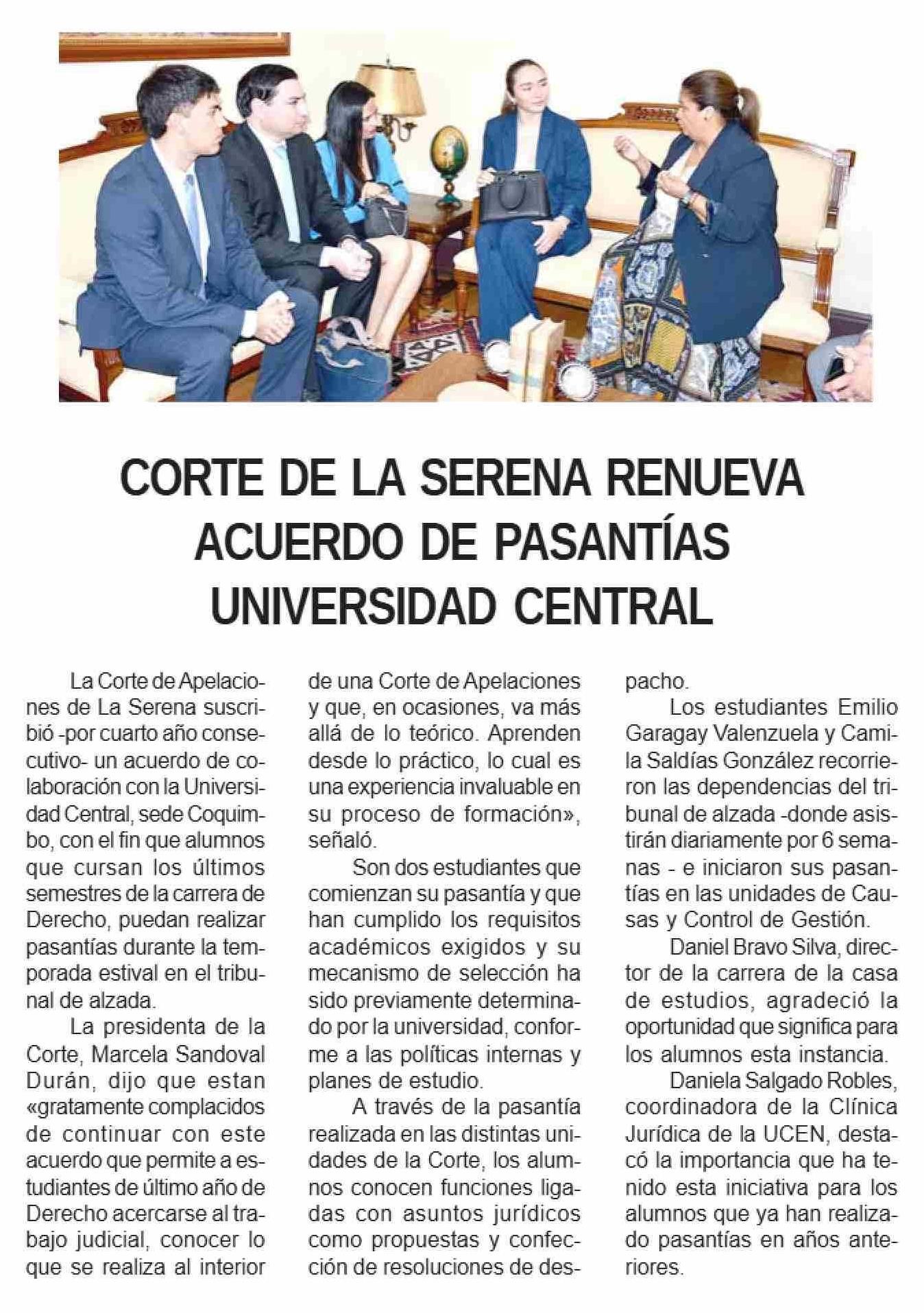 Título: CORTE DE LA SERENA RENUEVA ACUERDO DE PASANTÍAS UNIVERSIDAD CENTRAL