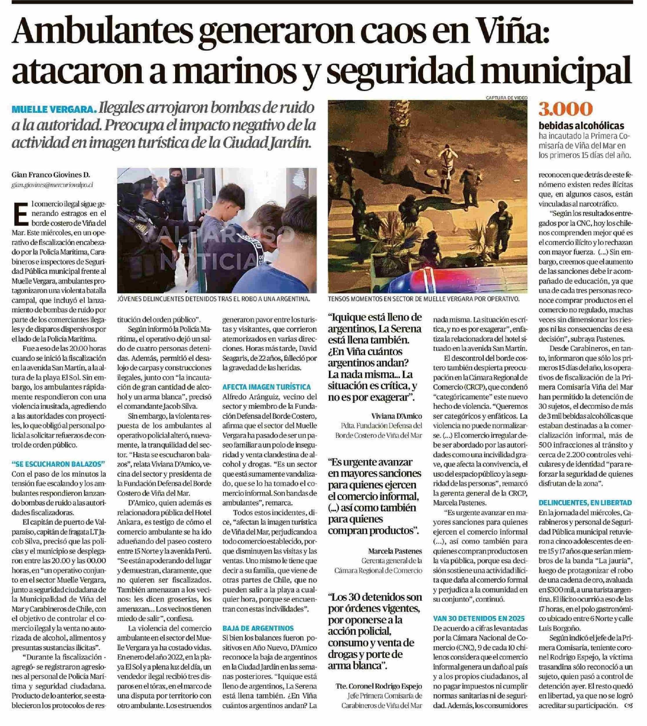 Título: Ambulantes generaron caos en Viña: atacaron a marinos y seguridad municipal