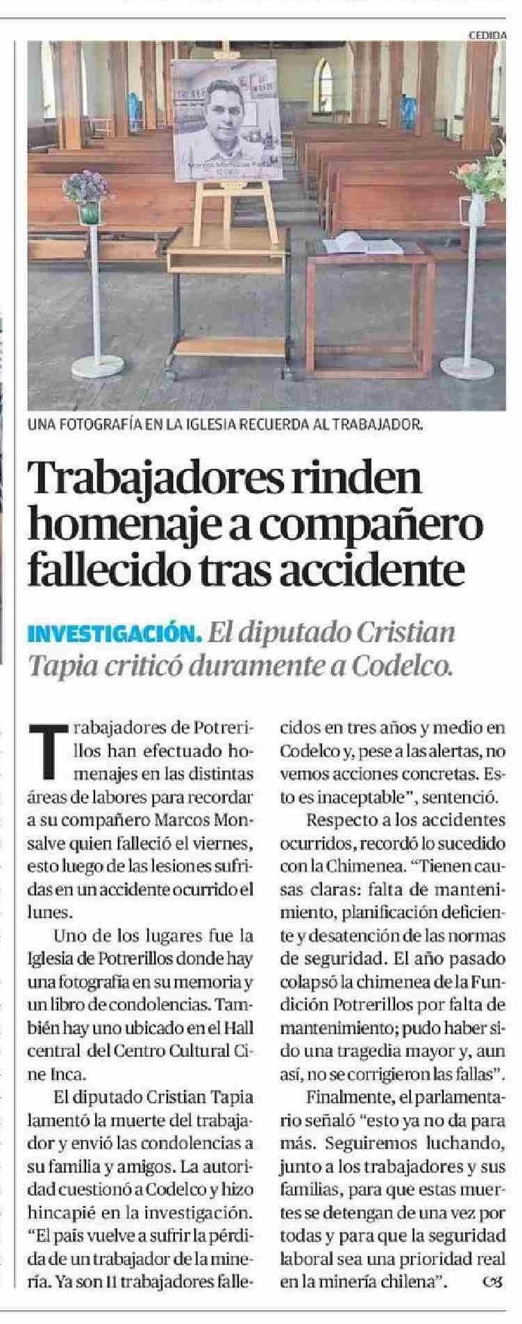 Trabajadores rinden homenaje a compañero fallecido tras accidente 18-01-2026 El Diario de Atacama |
