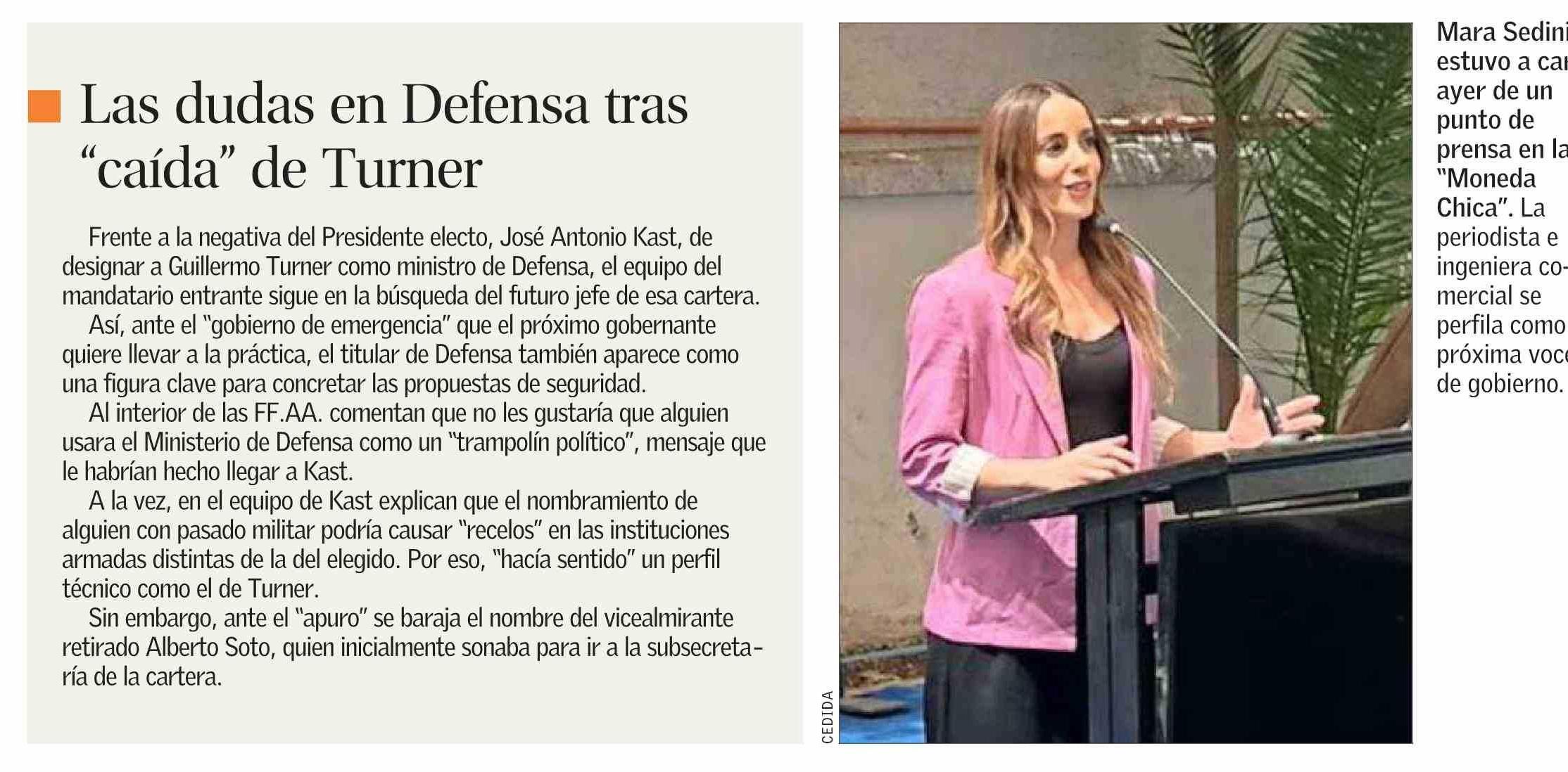 Las dudas en Defensa tras "caída" de Turner 17-01-2026 El Mercurio |