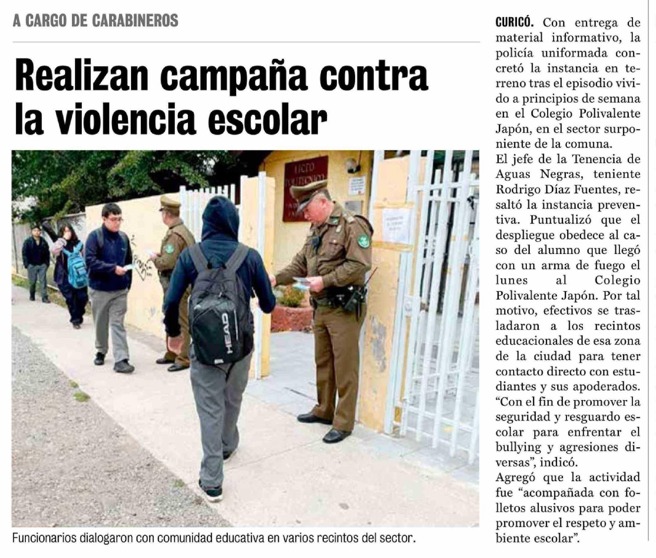 Realizan campaña contra la violencia escolar 01-04-2026 La Prensa de Curicó |