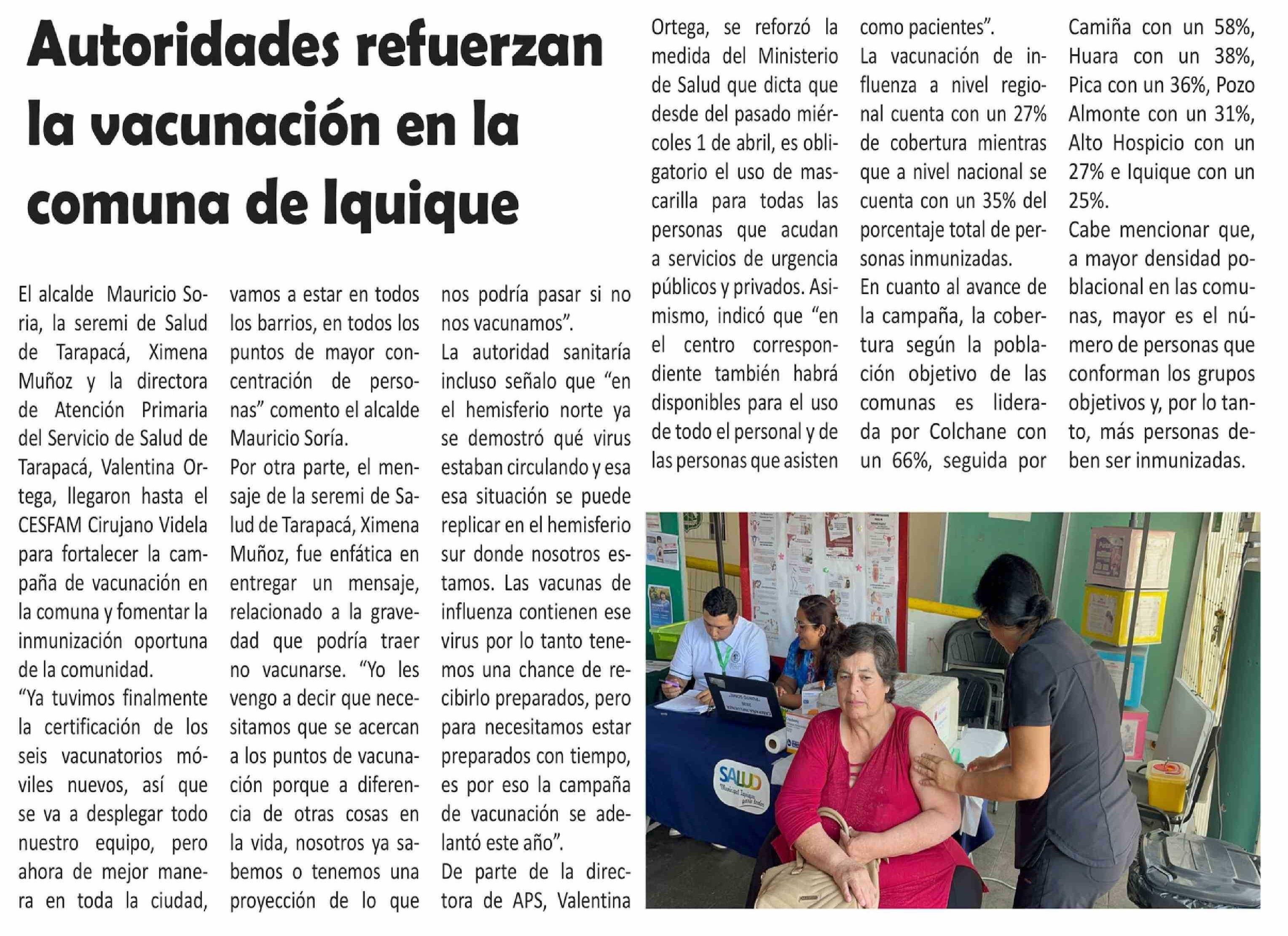 | Título: | Autoridades refuerzan la vacunación en la comuna de Iquique |