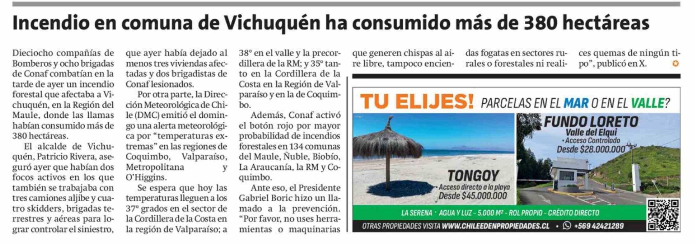 Título: Incendio en comuna de Vichuquén ha consumido más de 380 hectáreas