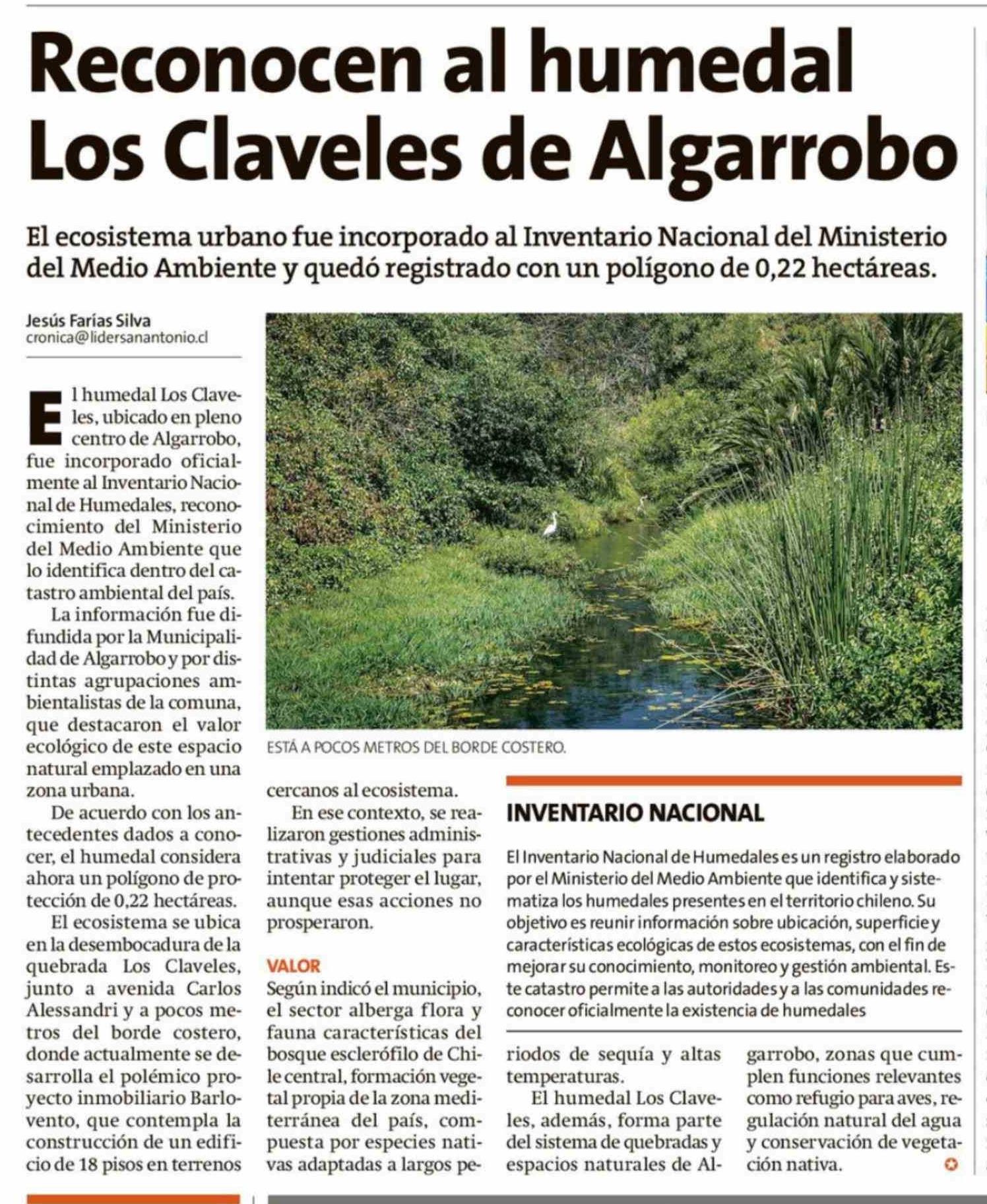 Título: Reconocen al humedal Los Claveles de Algarrobo