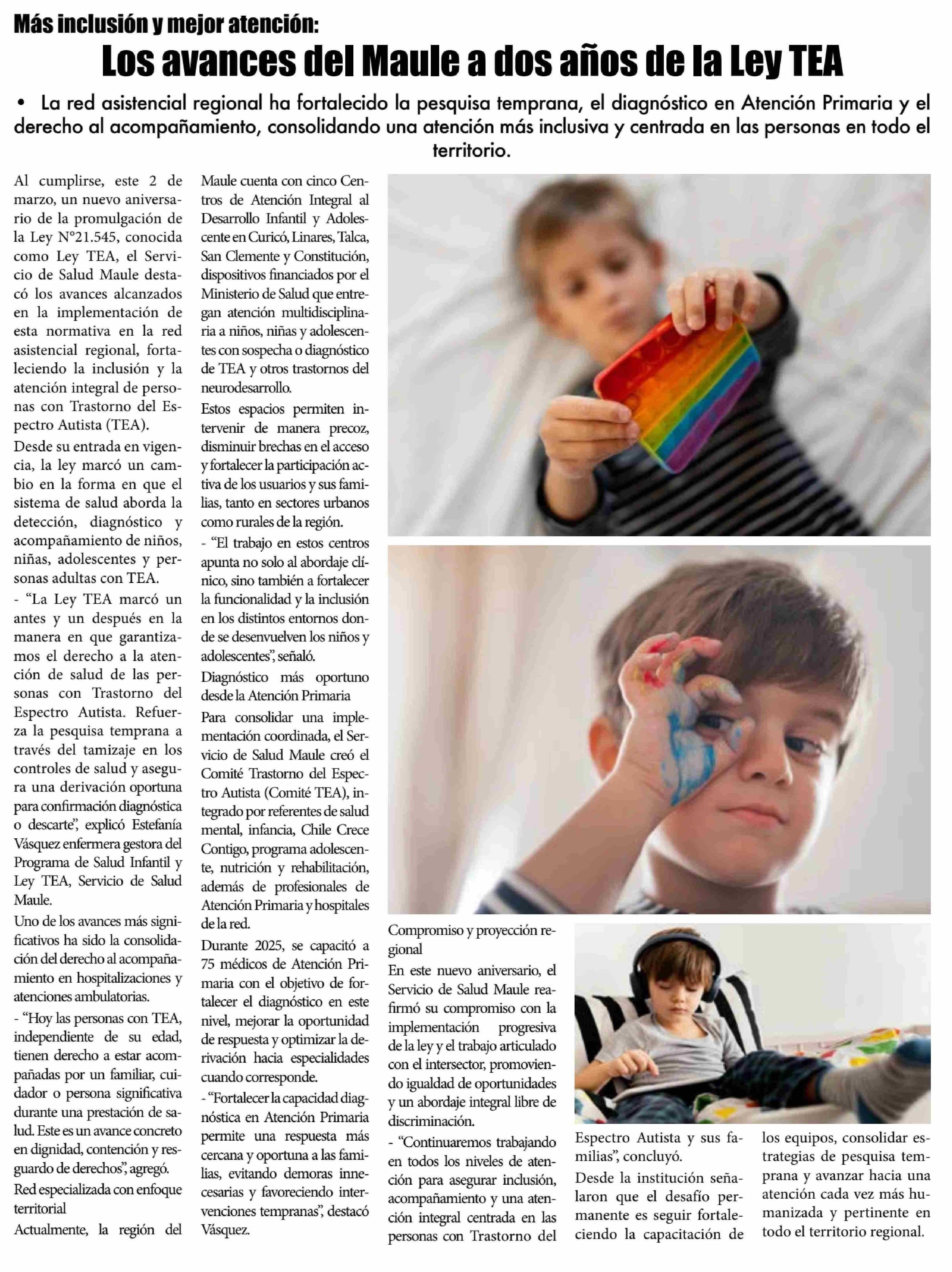 Los avances del Maule a dos años de la Ley TEA 03-03-2026 El Lector |