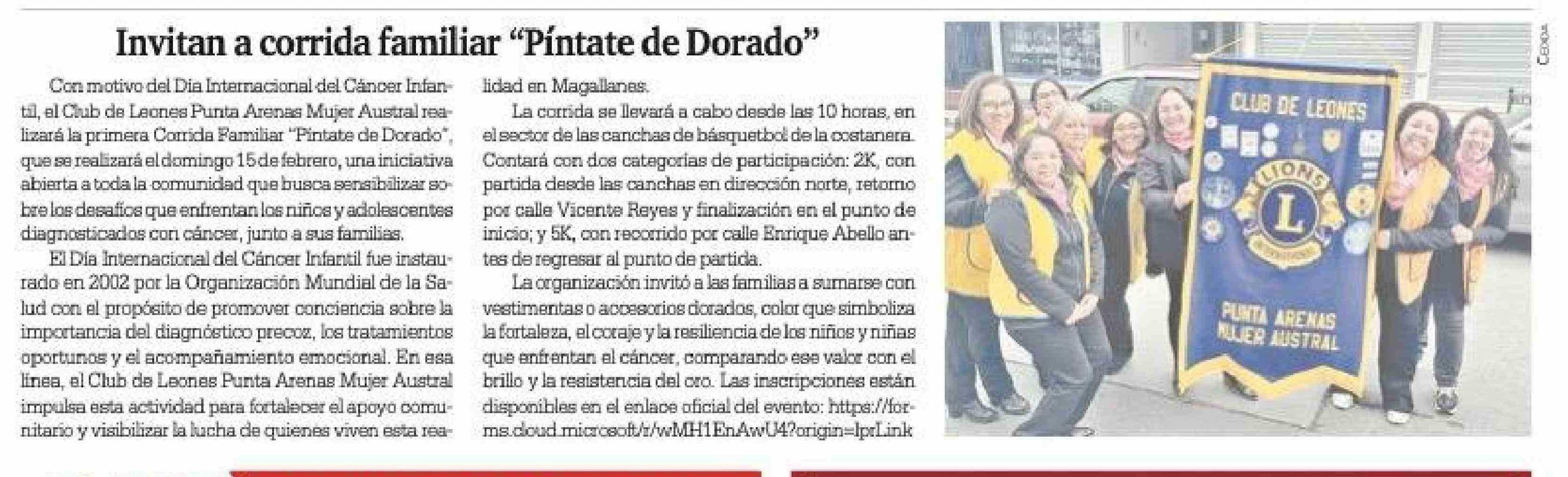 Invitan a corrida familiar "Pintate de Dorado" 05-02-2026 La Prensa Austral |