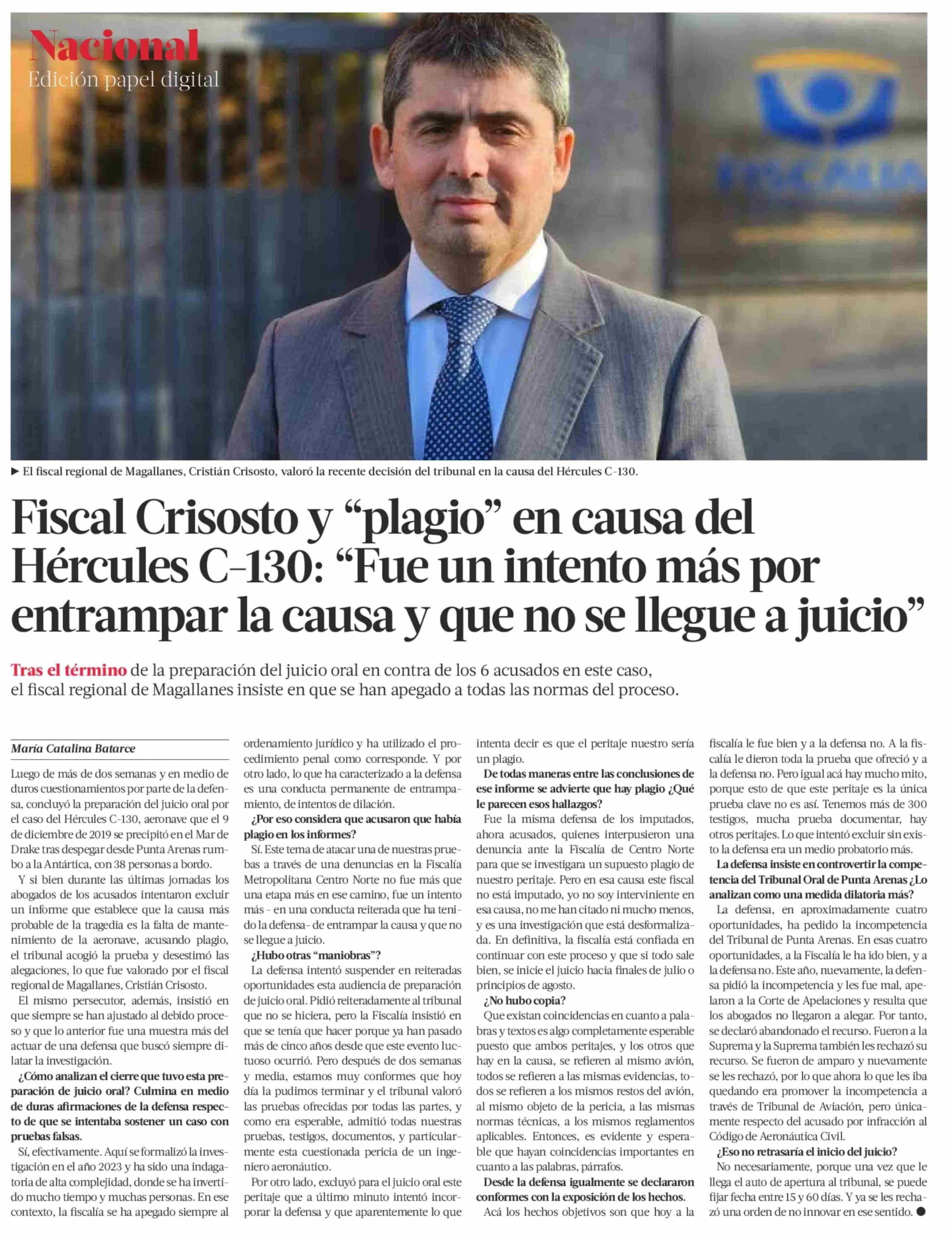 | Título: | Fiscal Crisosto y “plagio” en causa del Hércules C-130: “Fue un intento más por entrampar la causa y que no se llegue a juicio” |