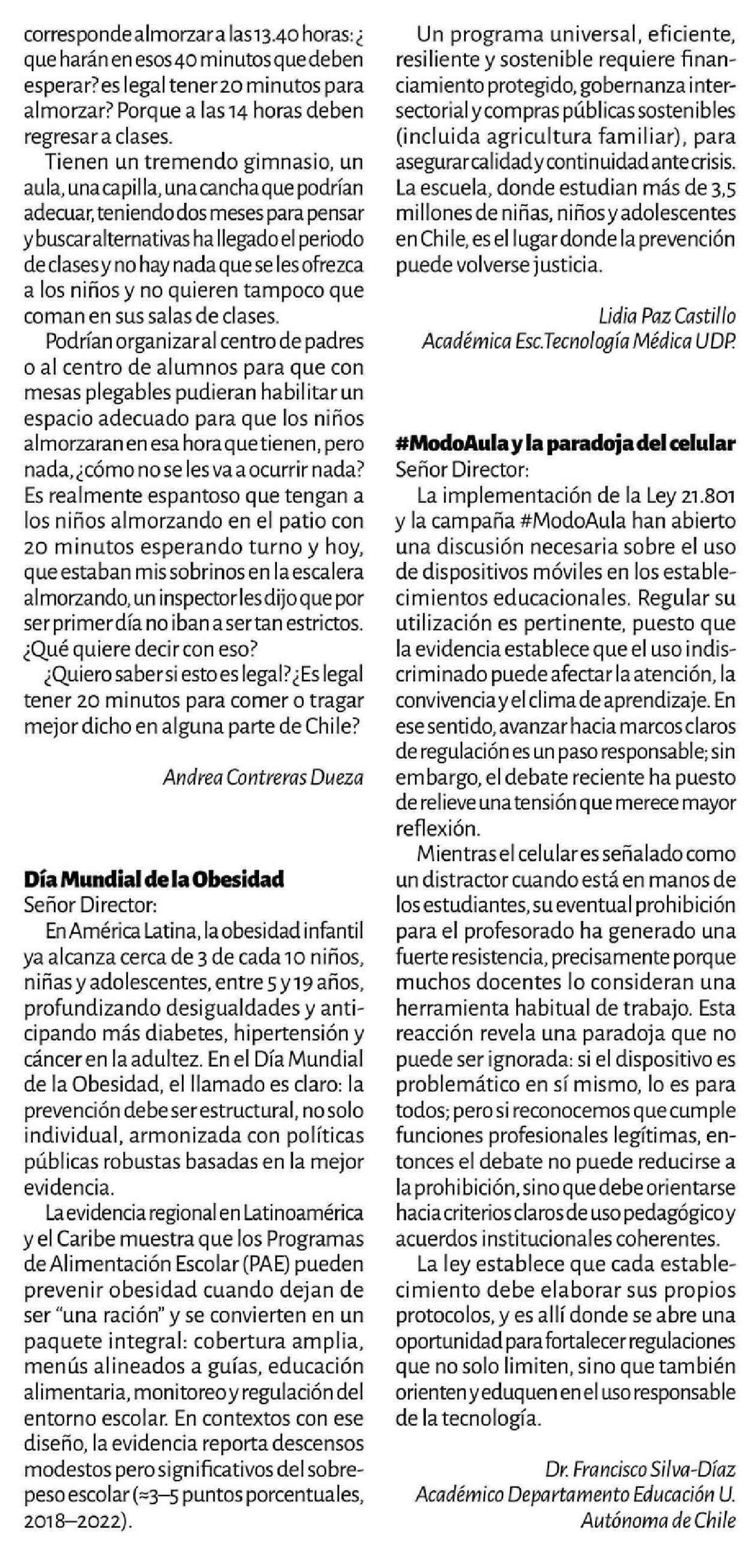 Cartas: Día Mundial de la Obesidad 07-03-2026 La Discusión |