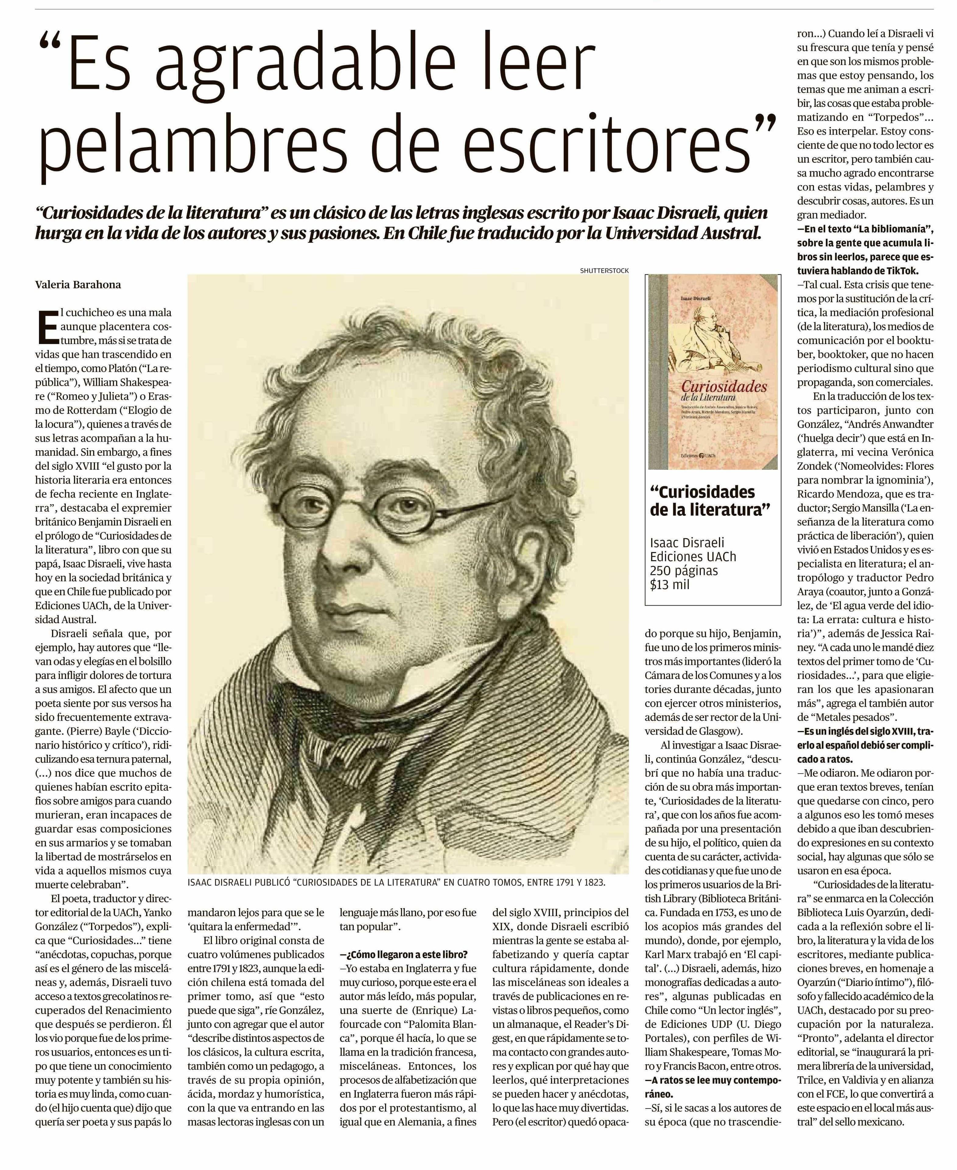 "Es agradable leer pelambres de escritores" 03-11-2024 El Austral de Osorno |