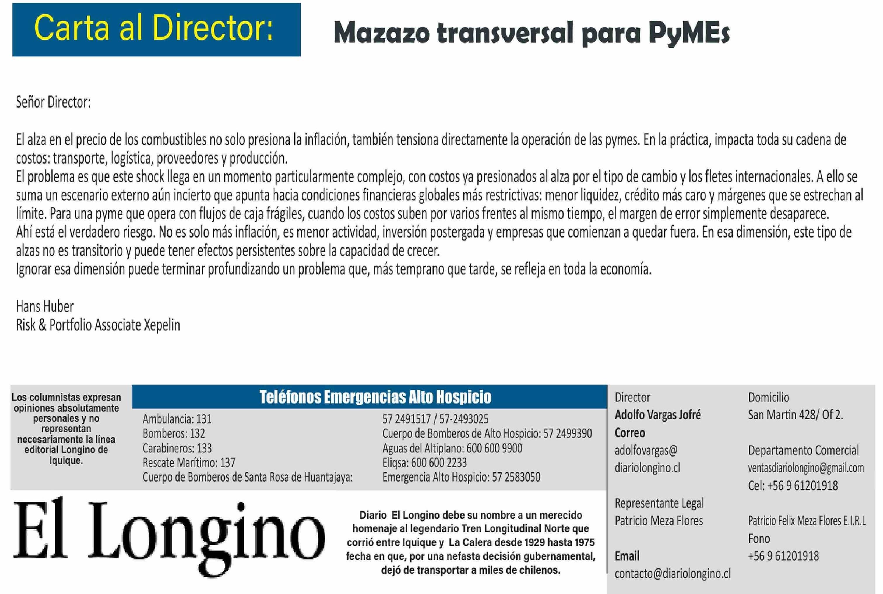 Cartas: Mazazo transversal para PyMEs 28-03-2026 El Longino |