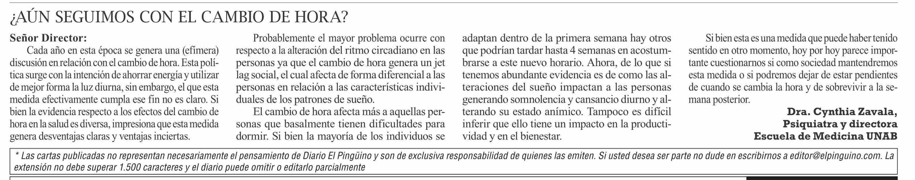 Cartas: ¿Aún seguimos con el cambio de hora? 02-04-2026 El Pingüino |