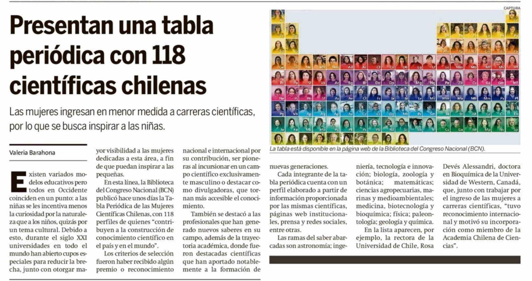 Título: Presentan una tabla periódica con 118 científicas chilenas