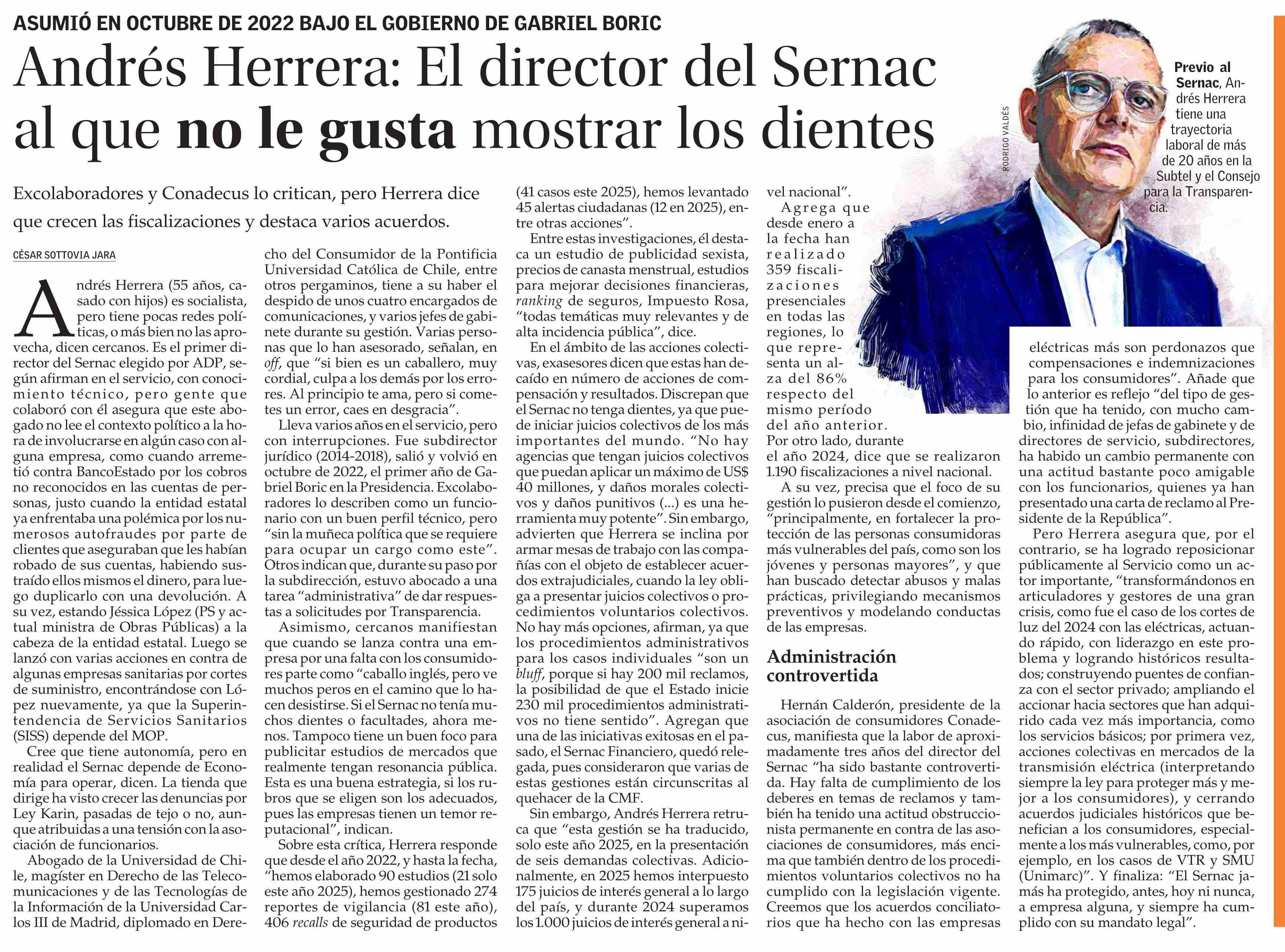 Andrés Herrera: El director del Sernac al que no le gusta mostrar los dientes 05-04-2025 El Mercurio |