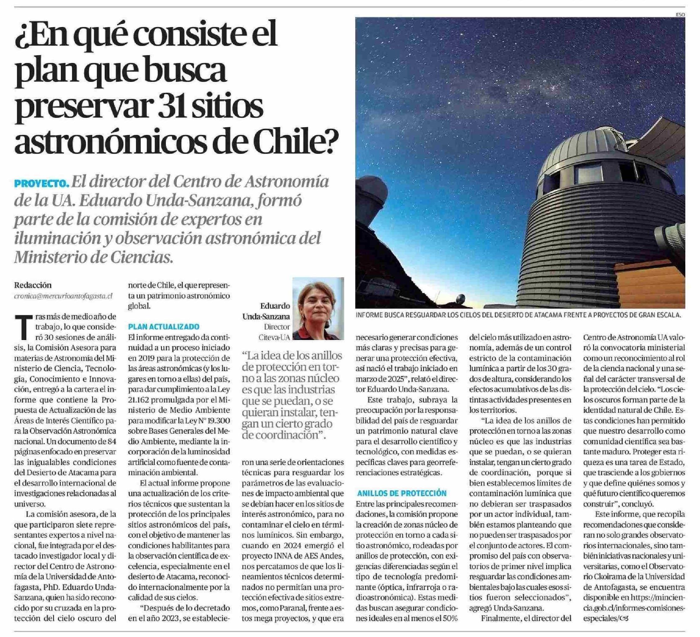¿En qué consiste el plan que busca preservar 31 sitios astronómicos de Chile? 11-01-2026 El Mercurio de Antofagasta |