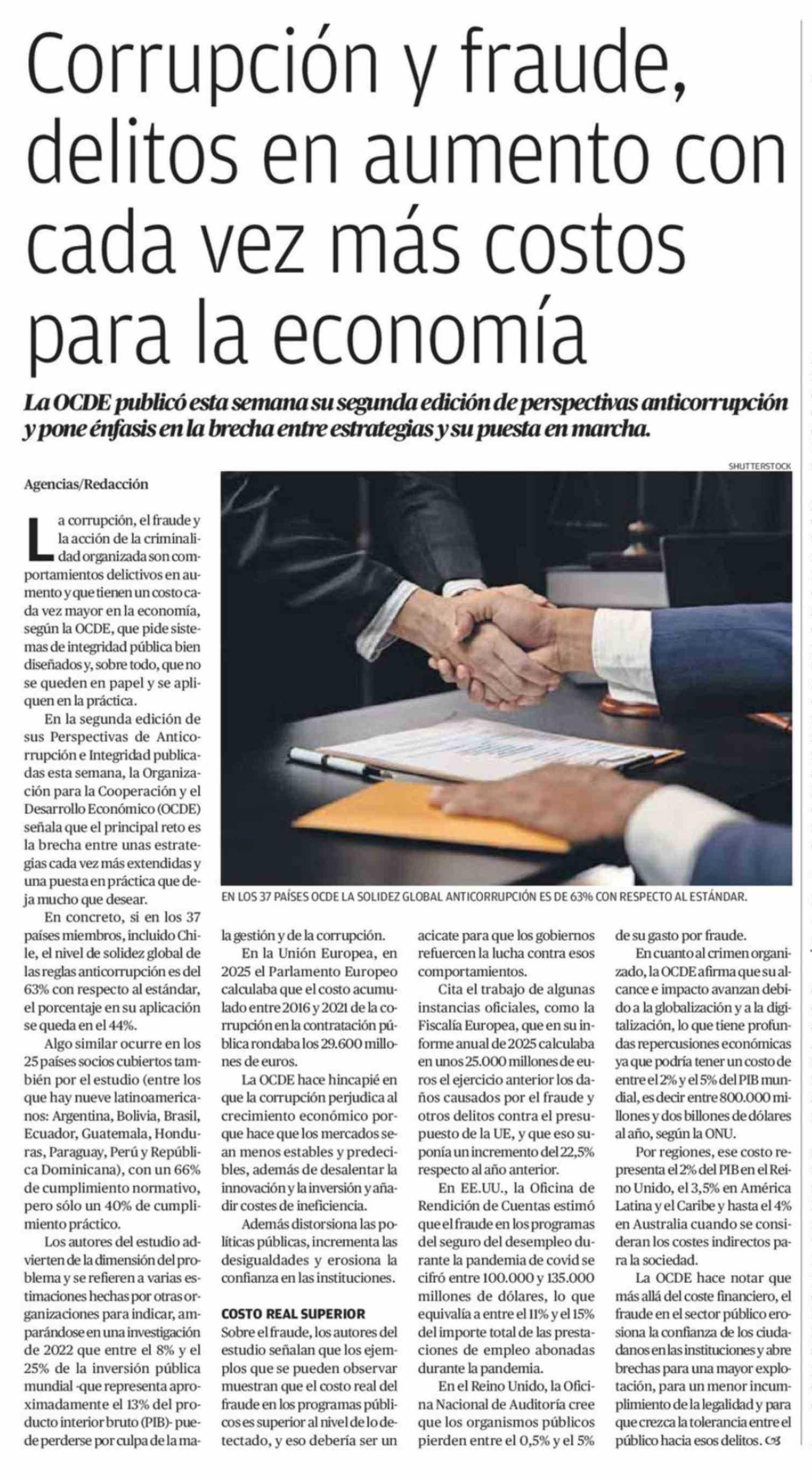 Corrupción y fraude, delitos en aumento con cada vez más costos para la economía 29-03-2026 El Diario de Atacama |