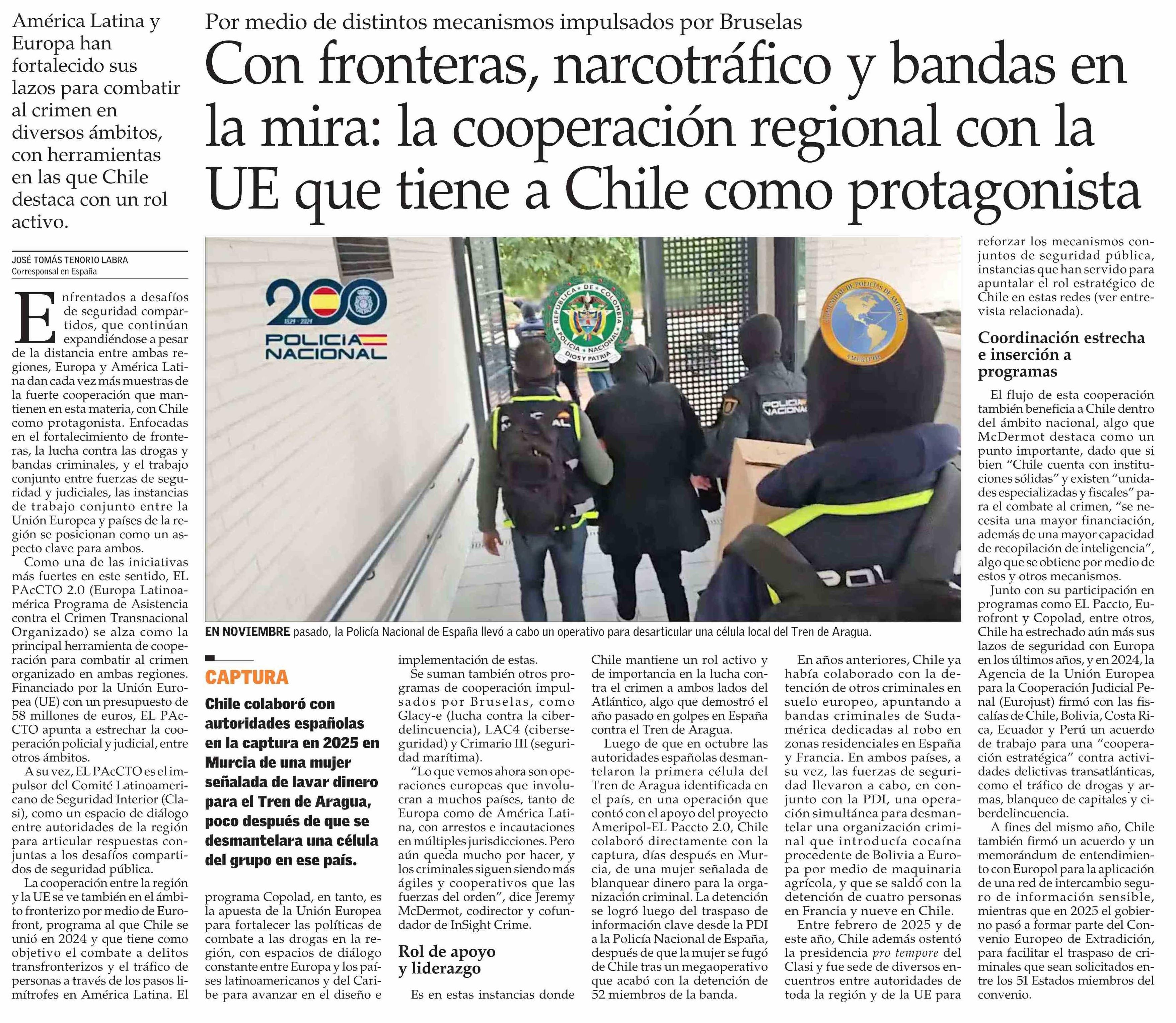 | Título: | Con fronteras, narcotráfico y bandas en la mira: la cooperación regional con la UE que tiene a Chile como protagonista |