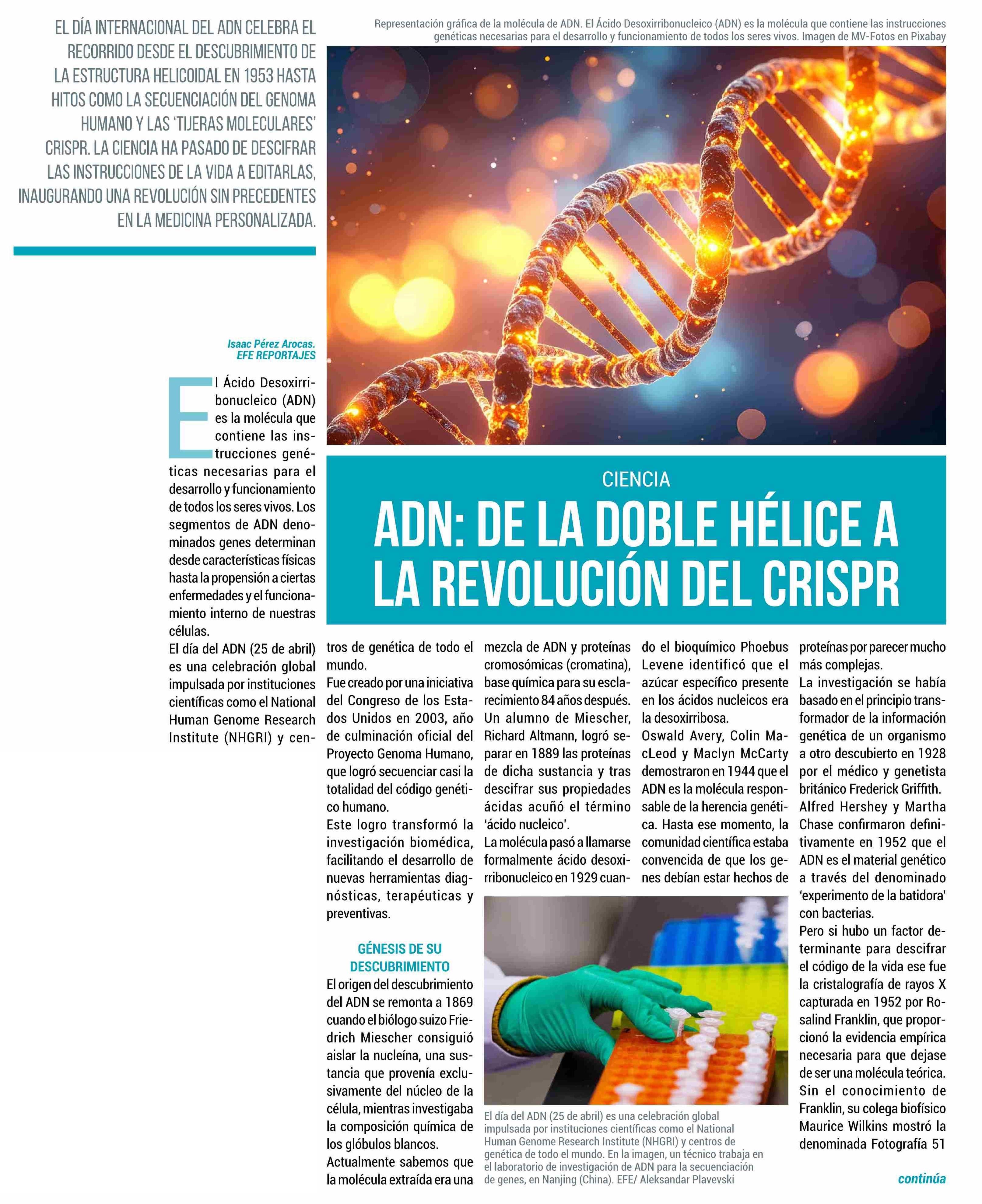 | Título: | ADN: DE LA DOBLE HÉLICE A LA REVOLUCIÓN DEL CRISPR |