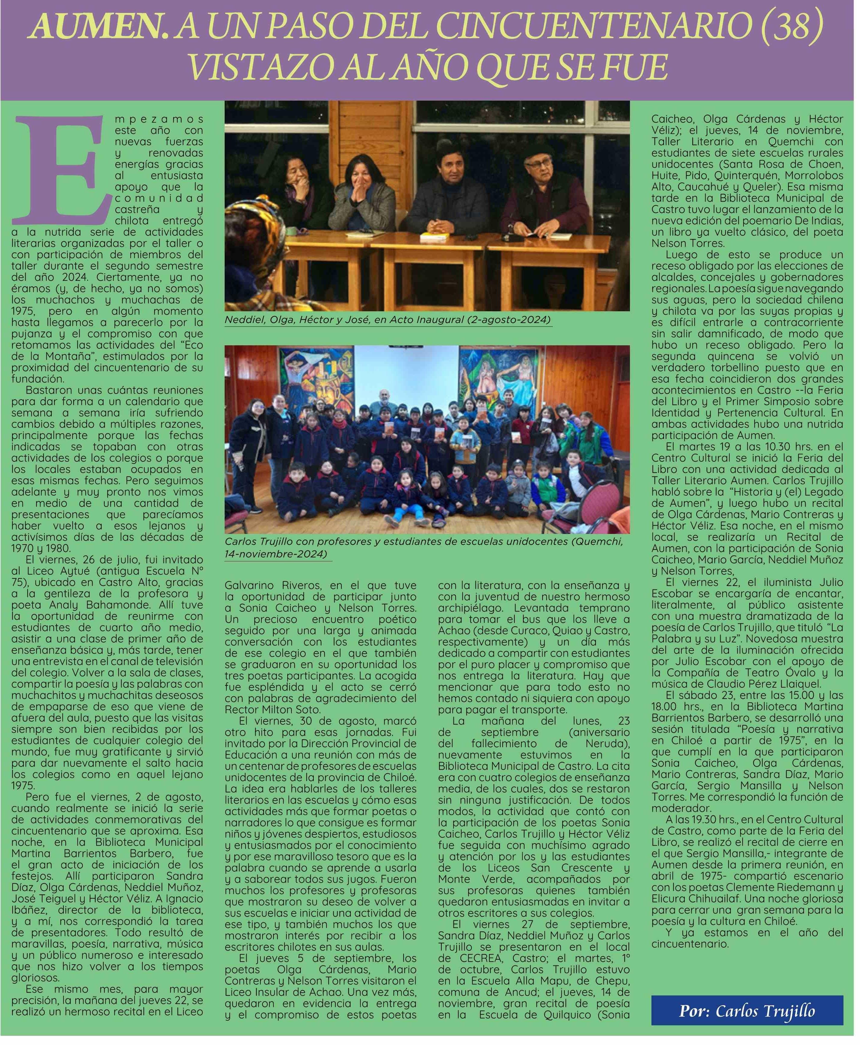 | Título: | AUMEN. AUN PASO DEL CINCUENTENARIO (38) VISTAZO AL AÑO QUE SE FUE |