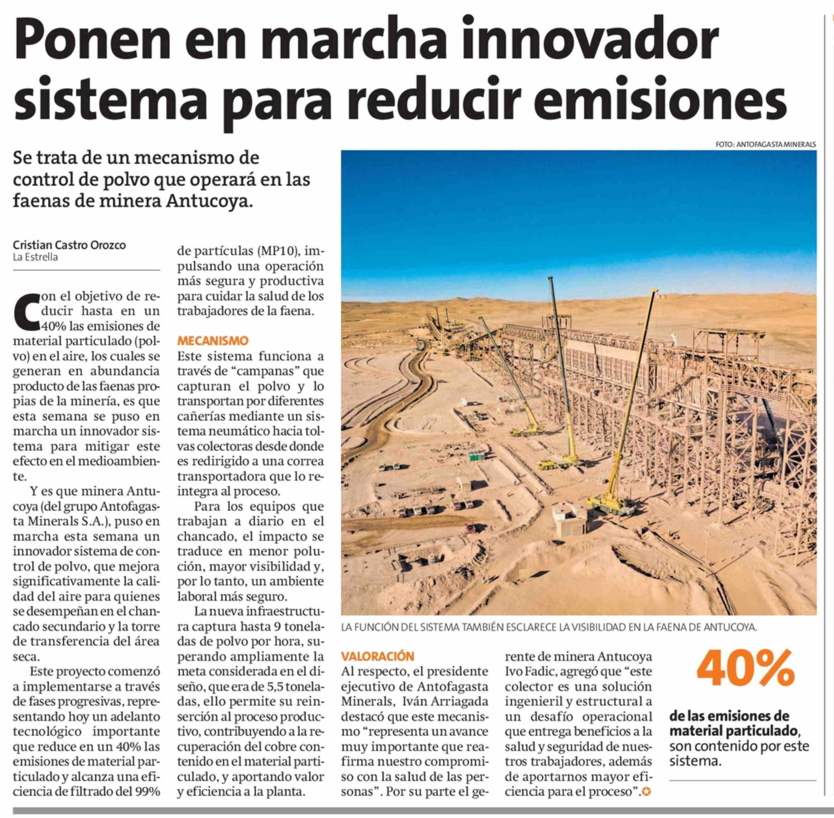 Ponen en marcha innovador sistema para reducir emisiones 07-02-2026 La Estrella de Antofagasta |