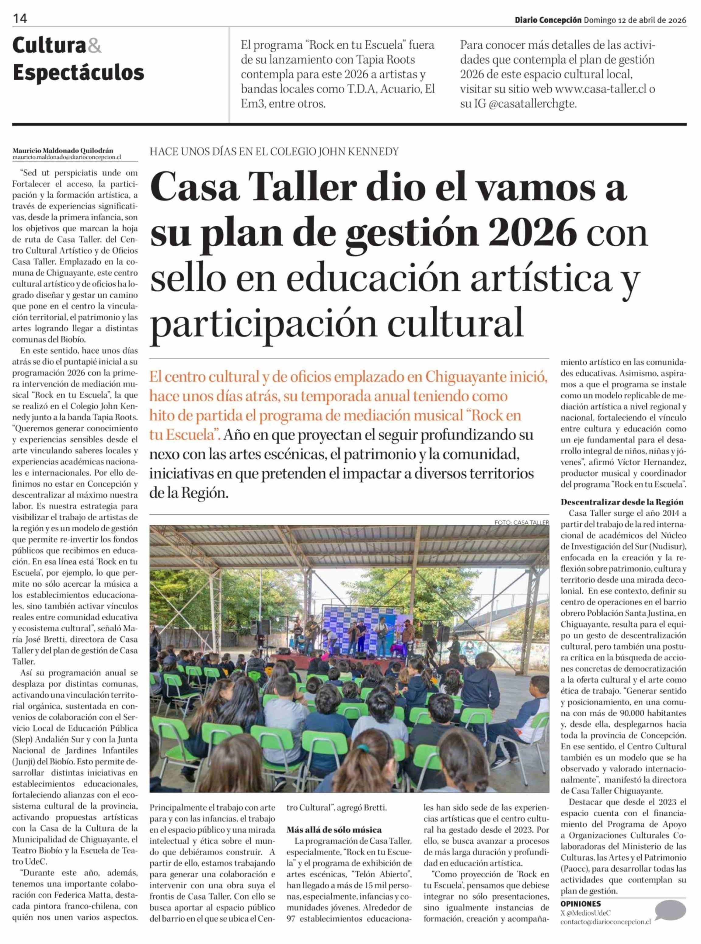 Casa Taller dio el vamos a su plan de gestión 2026 con sello en educación artística y participación cultural 12-04-2026 Diario Concepción |