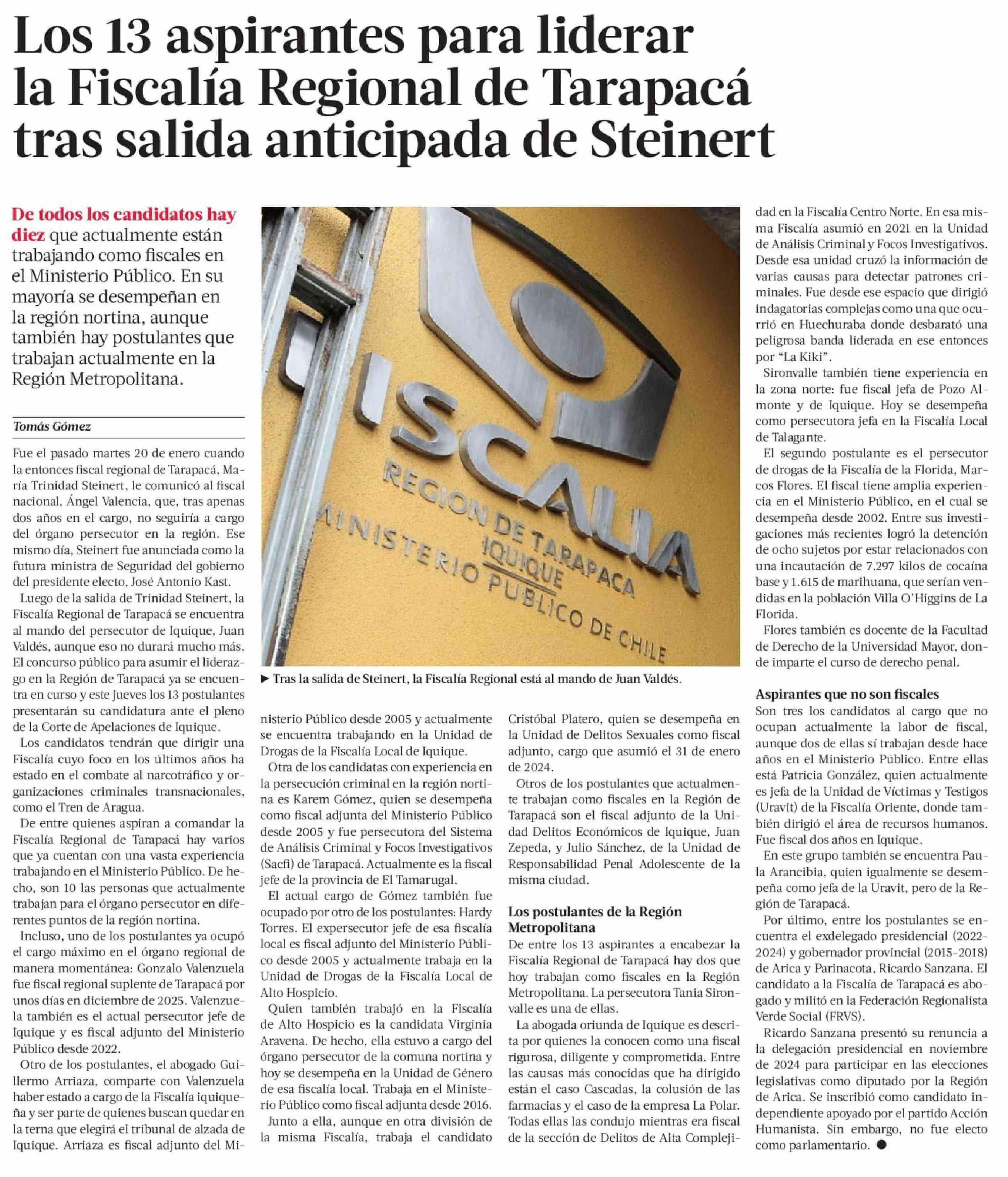 Título: Los 13 aspirantes para liderar la Fiscalía Regional de Tarapacá tras salida anticipada de Steinert