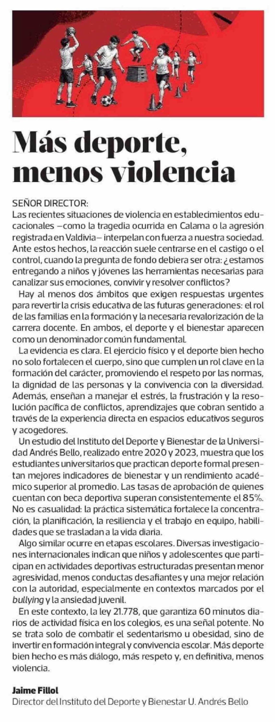 Título: Cartas: Más deporte, menos violencia