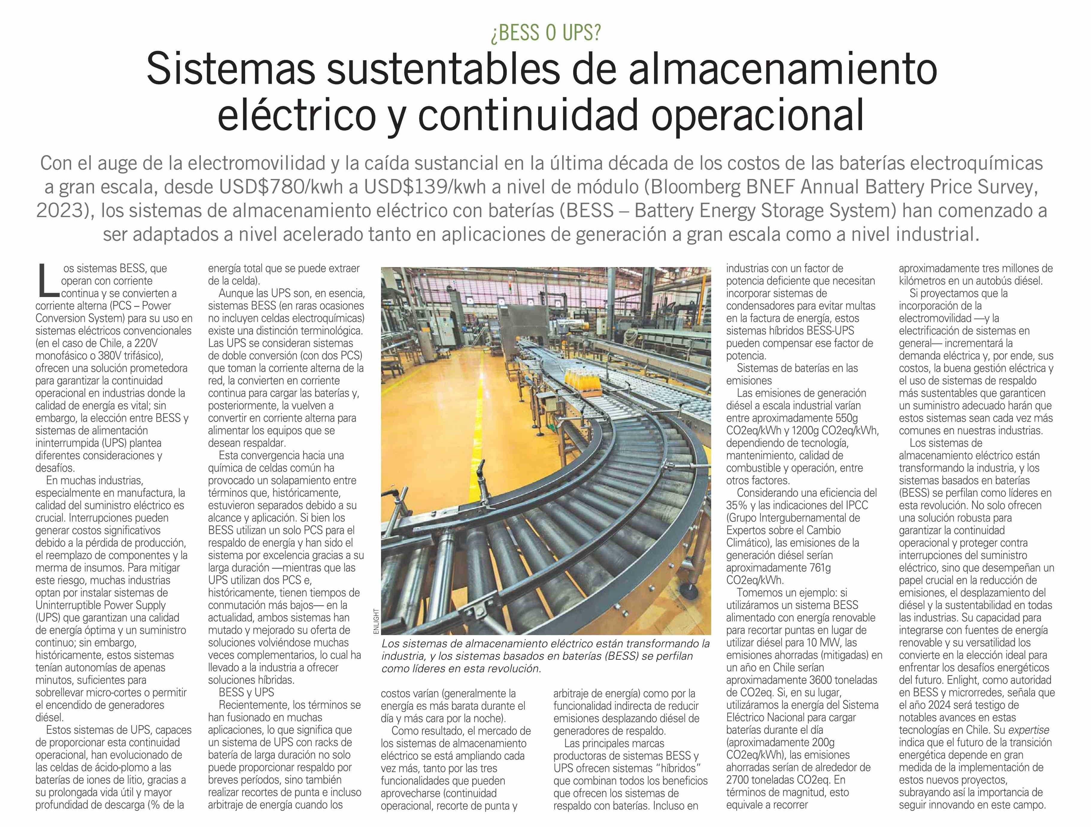 Título: ¿BESS 0 UPS? Sistemas sustentables de almacenamiento eléctrico y continuidad operacional
