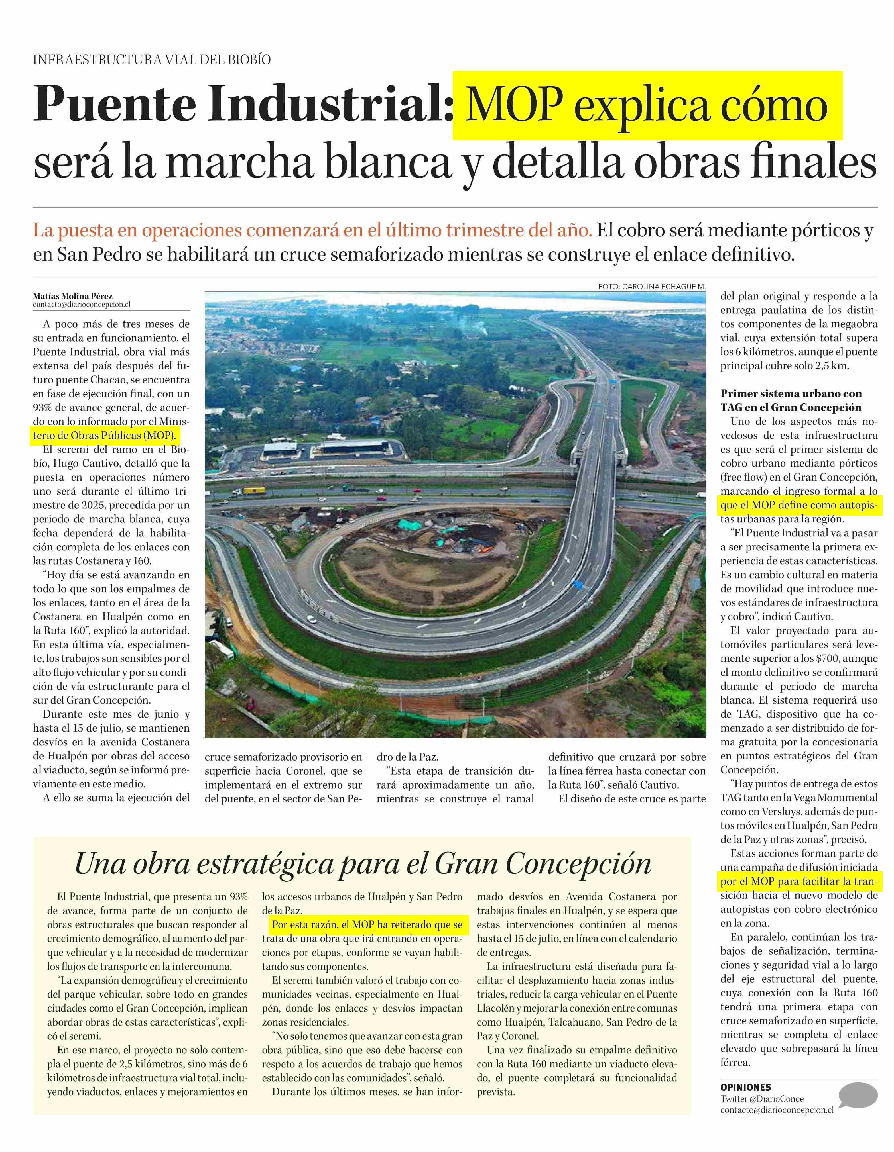 MOP explica cómo será la marcha blanca y detalla obras finales 10-06-2025 Diario Concepción |
