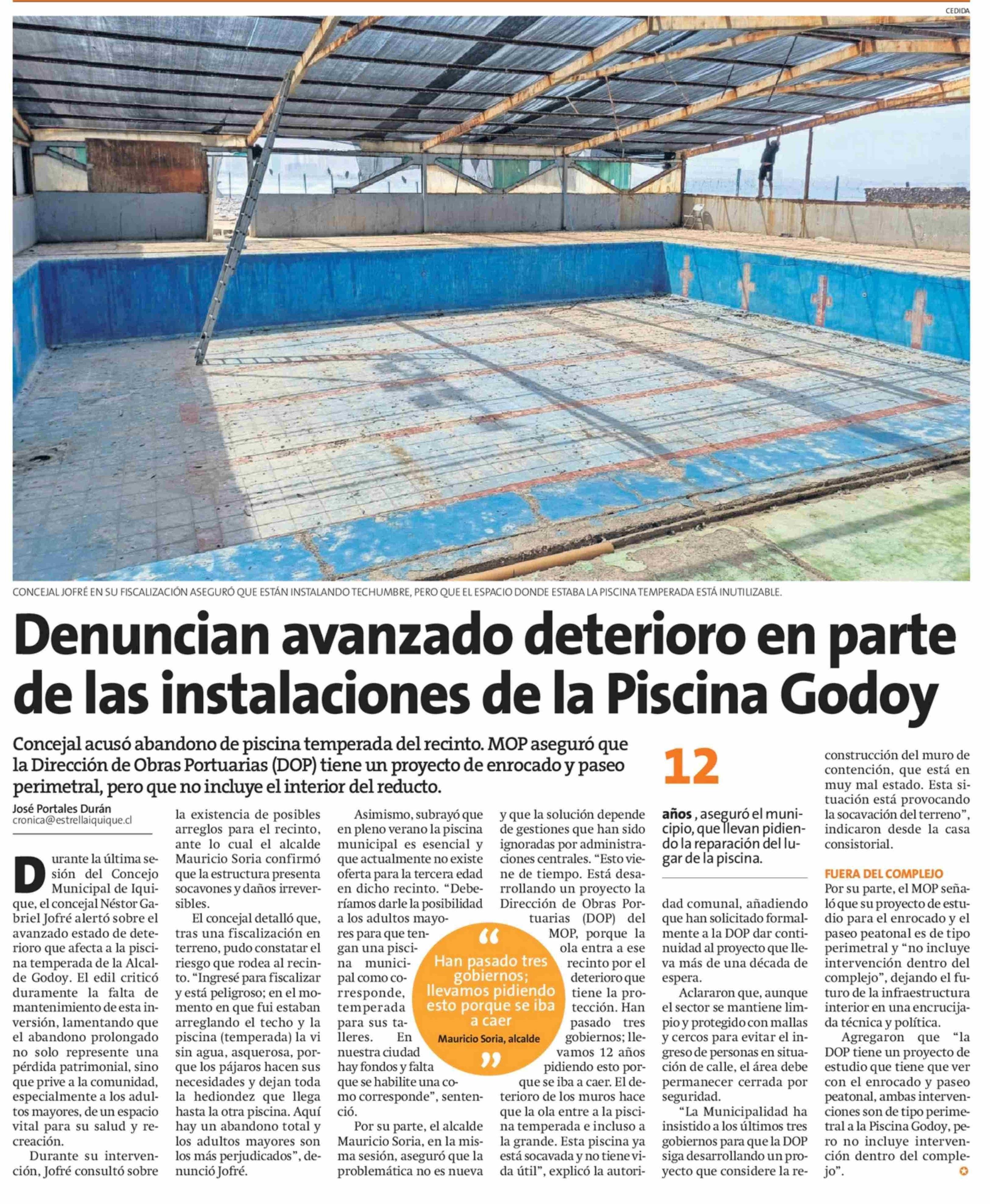 Denuncian avanzado deterioro en parte de las instalaciones de la Piscina Godoy 07-02-2026 La Estrella de Iquique |