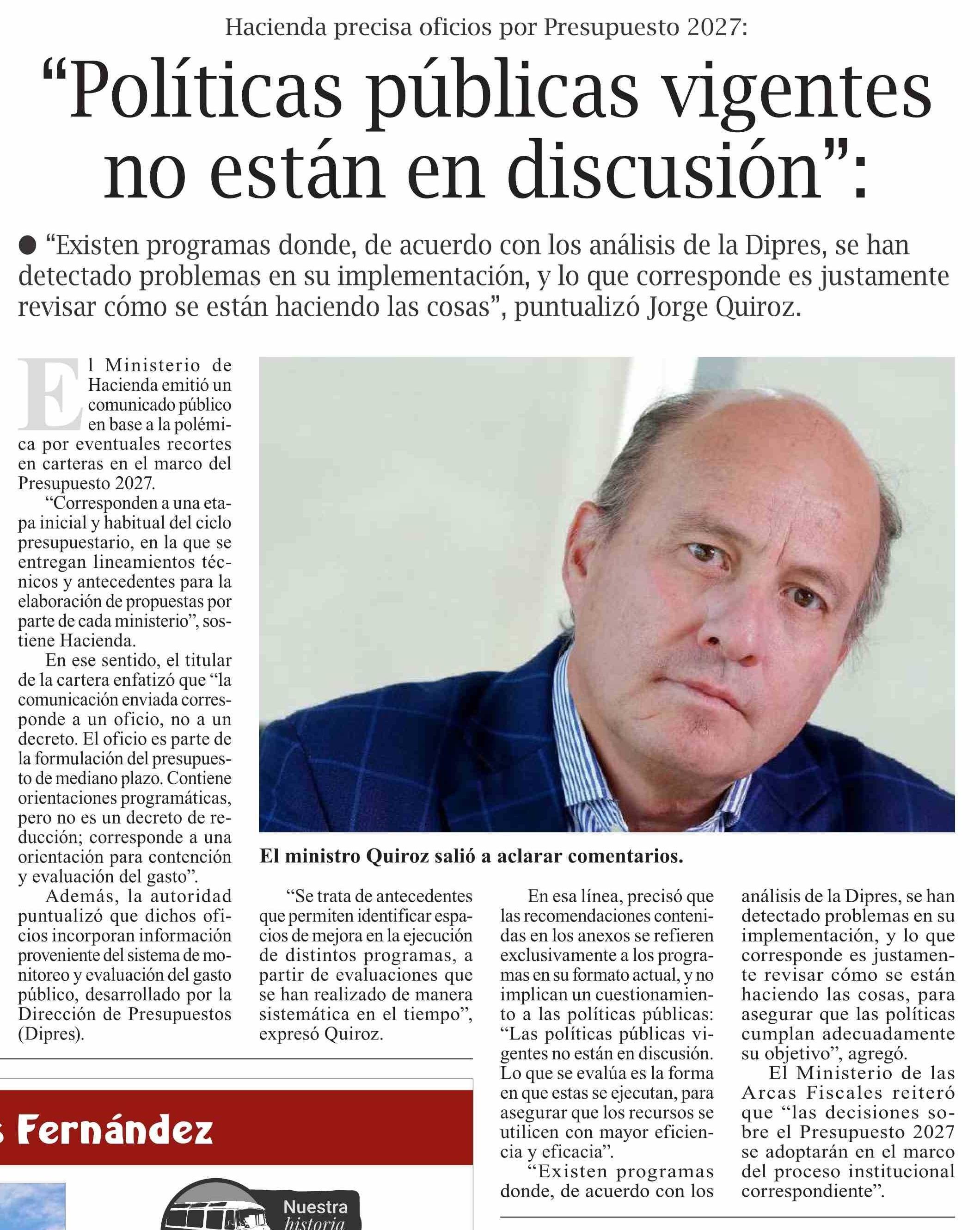 | Título: | “Políticas públicas vigentes no están en discusión”: |