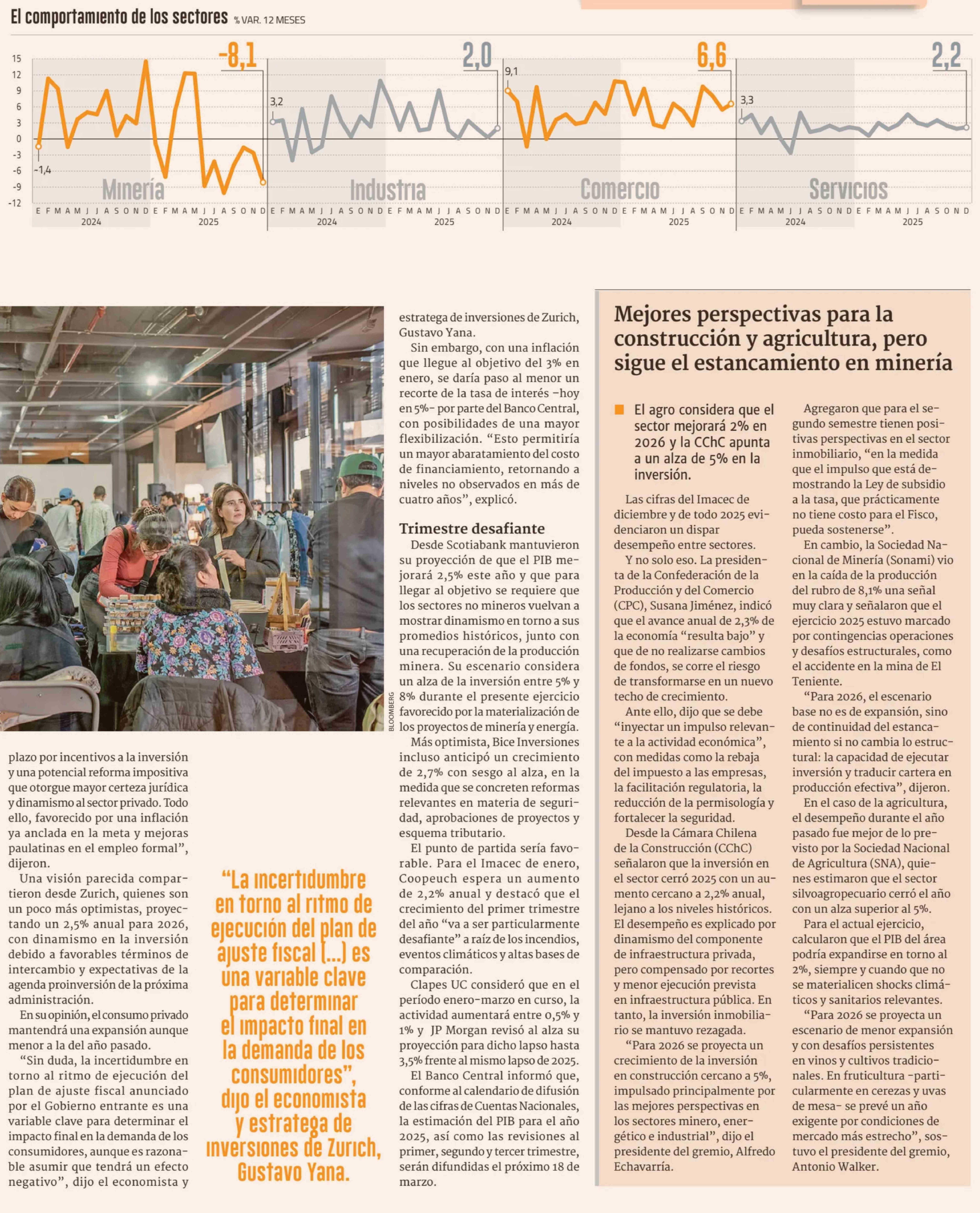| Título: | Tras crecer 2,3% en 2025, mercado ve margen para un mayor vuelo de la economía este año pese al ajuste fiscal |