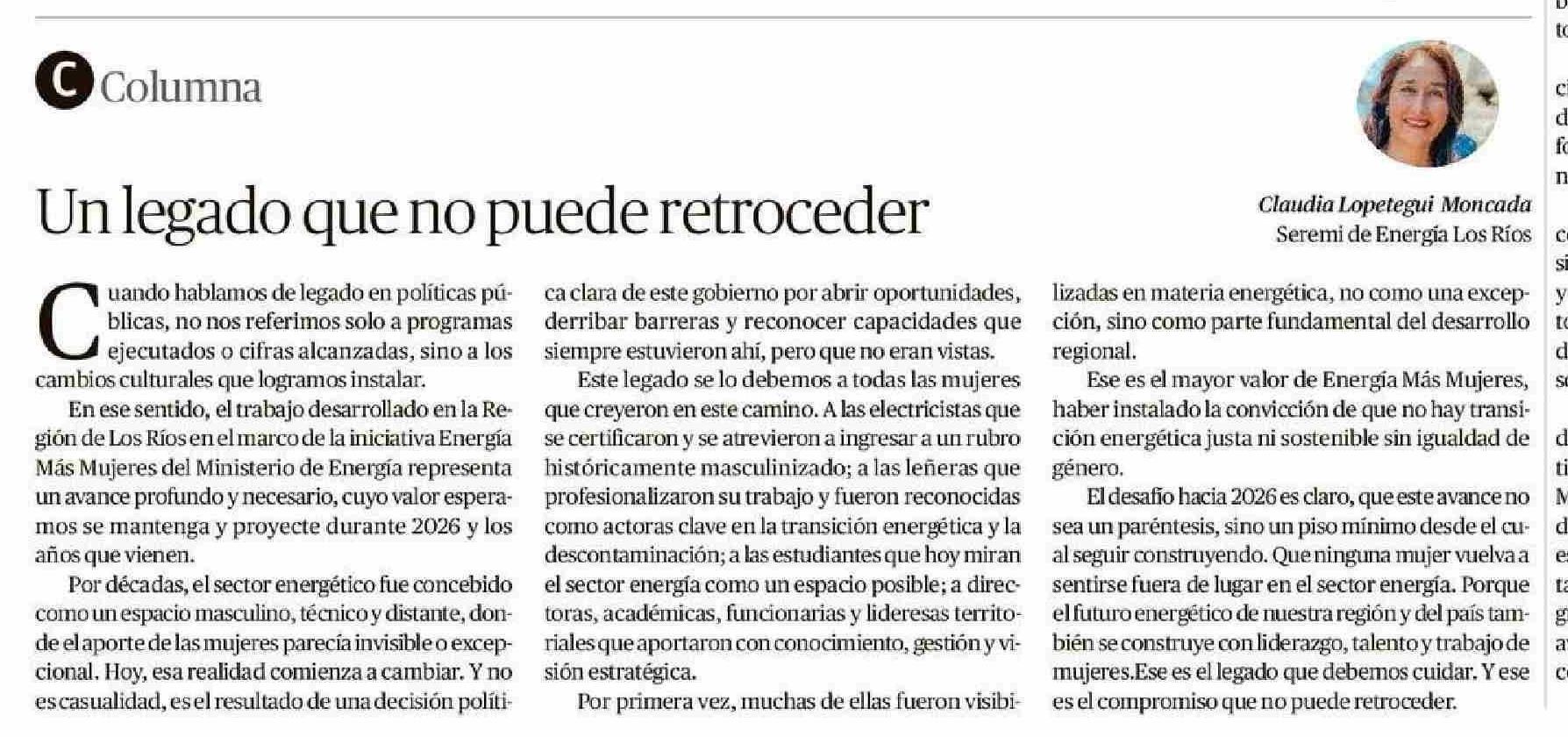 Fecha: 07-01-2026 Sector: Columnas de Opinión Región: Región de Los Ríos