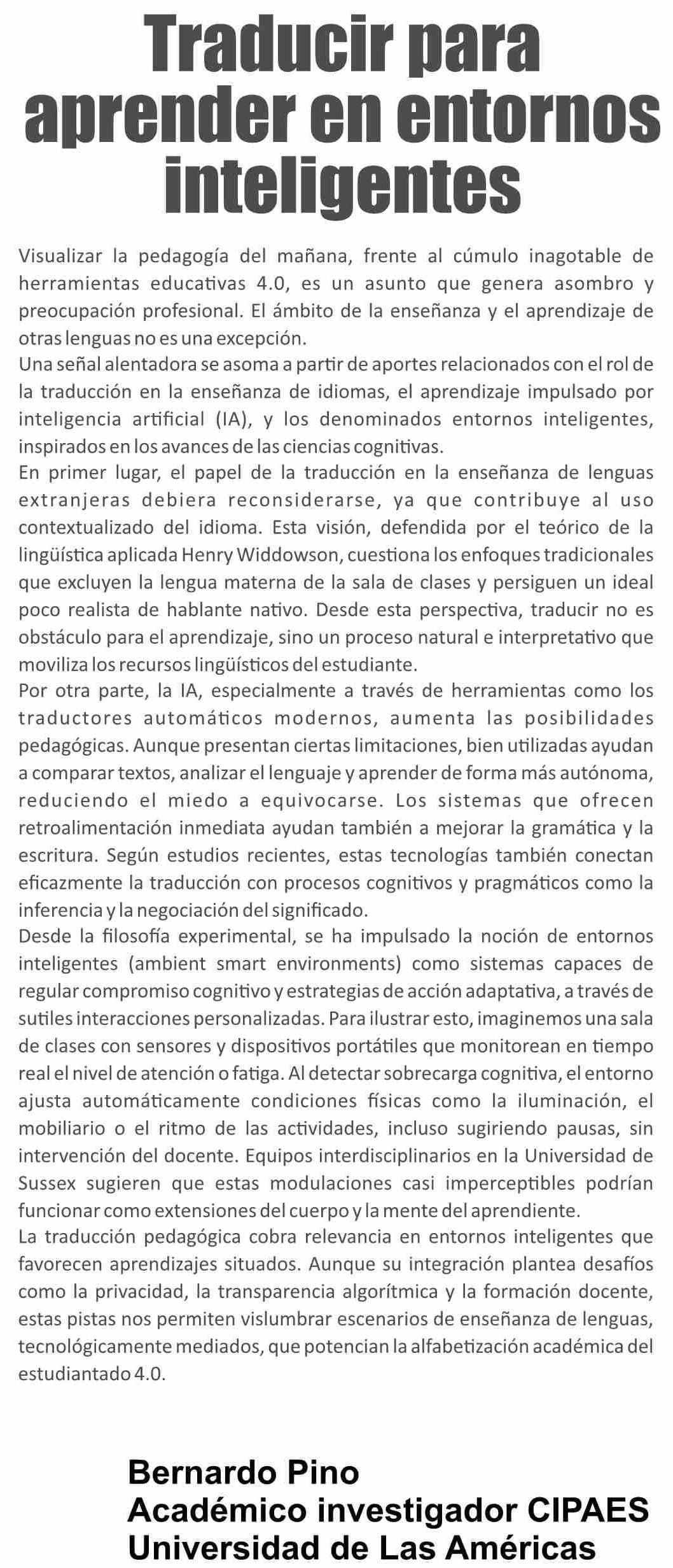 COLUMNAS DE OPINIÓN: Traducir para aprender en entornos inteligentes 21-05-2025 El Labrador |