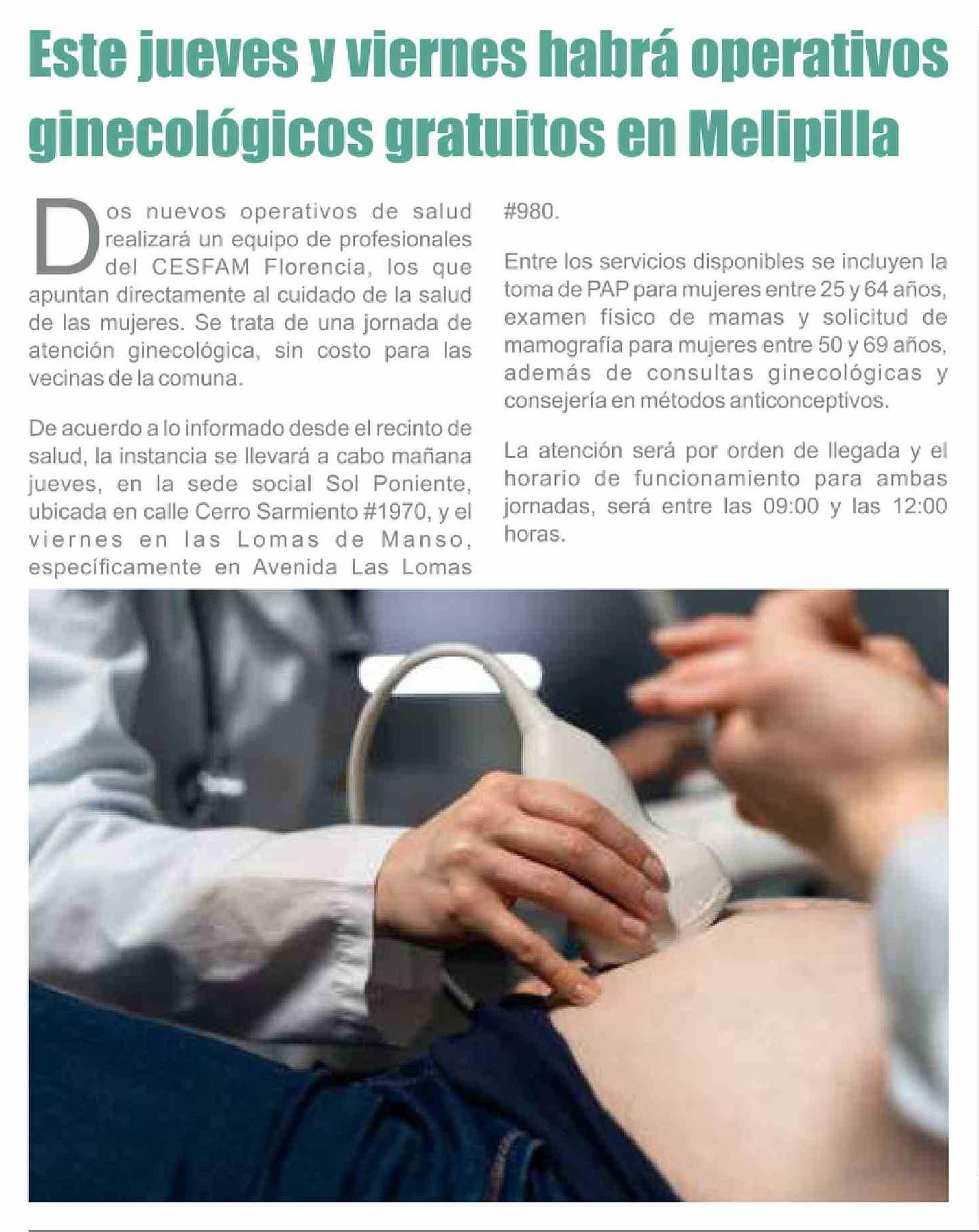 Título: Este jueves y viernes habrá operativos ginecológicos gratuitos en Melipilla