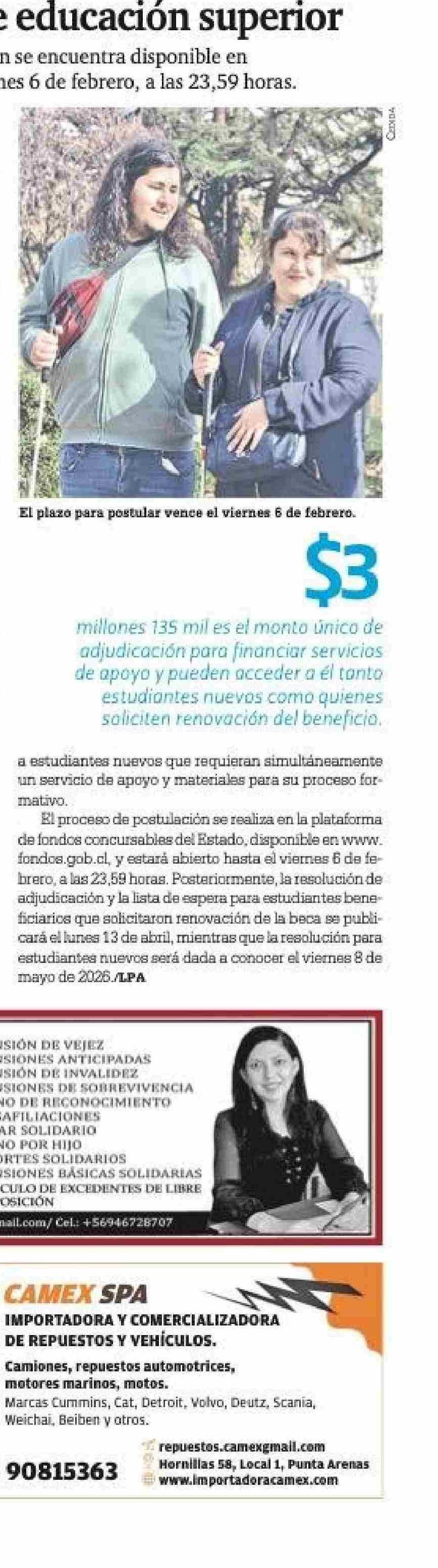Senadis anuncia beca para estudiantes con discapacidad de educación superior 28-01-2026 La Prensa Austral |