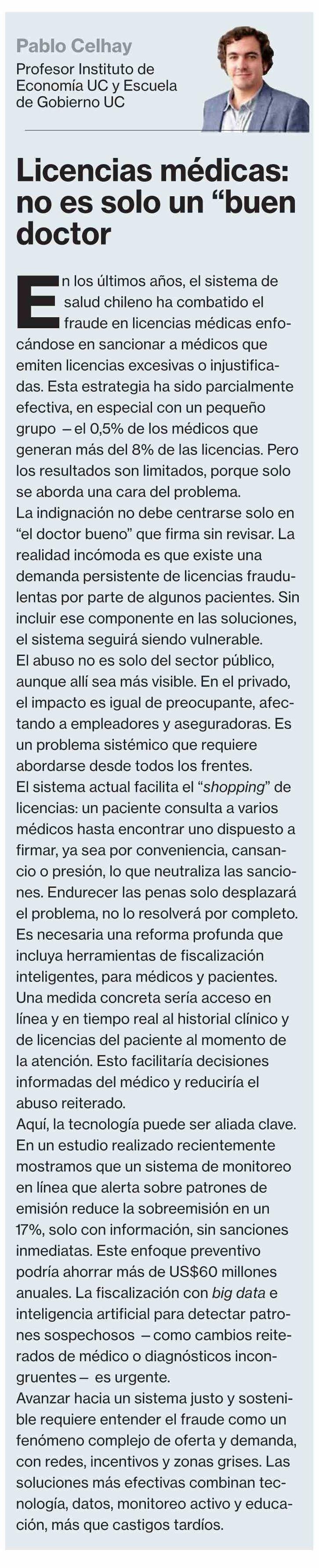 COLUMNAS DE OPINIÓN: Licencias médicas: no es solo un “buen doctor 02-06-2025 La Segunda |