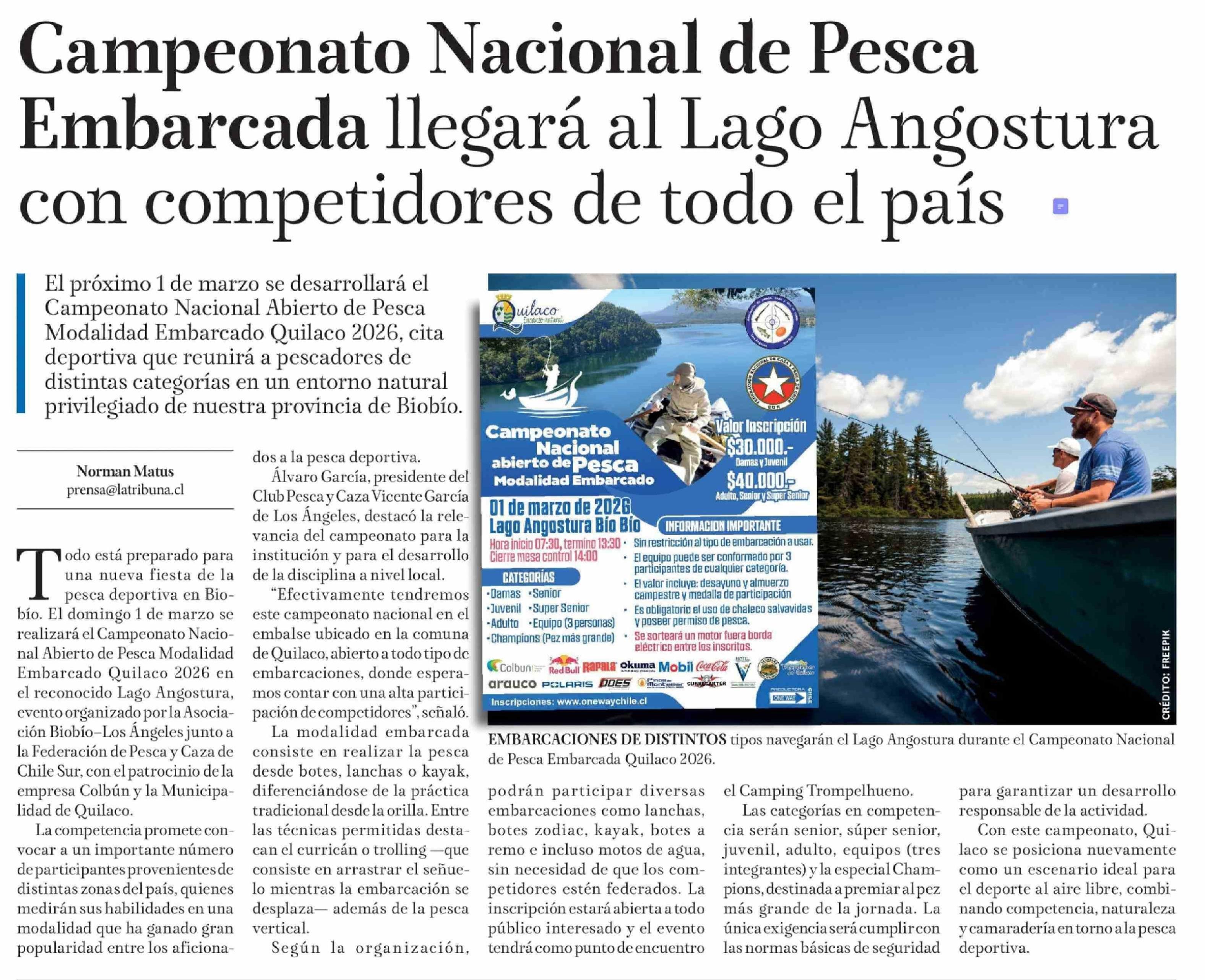 Título: Campeonato Nacional de Pesca Embarcada llegará al Lago Angostura con competidores de todo el país