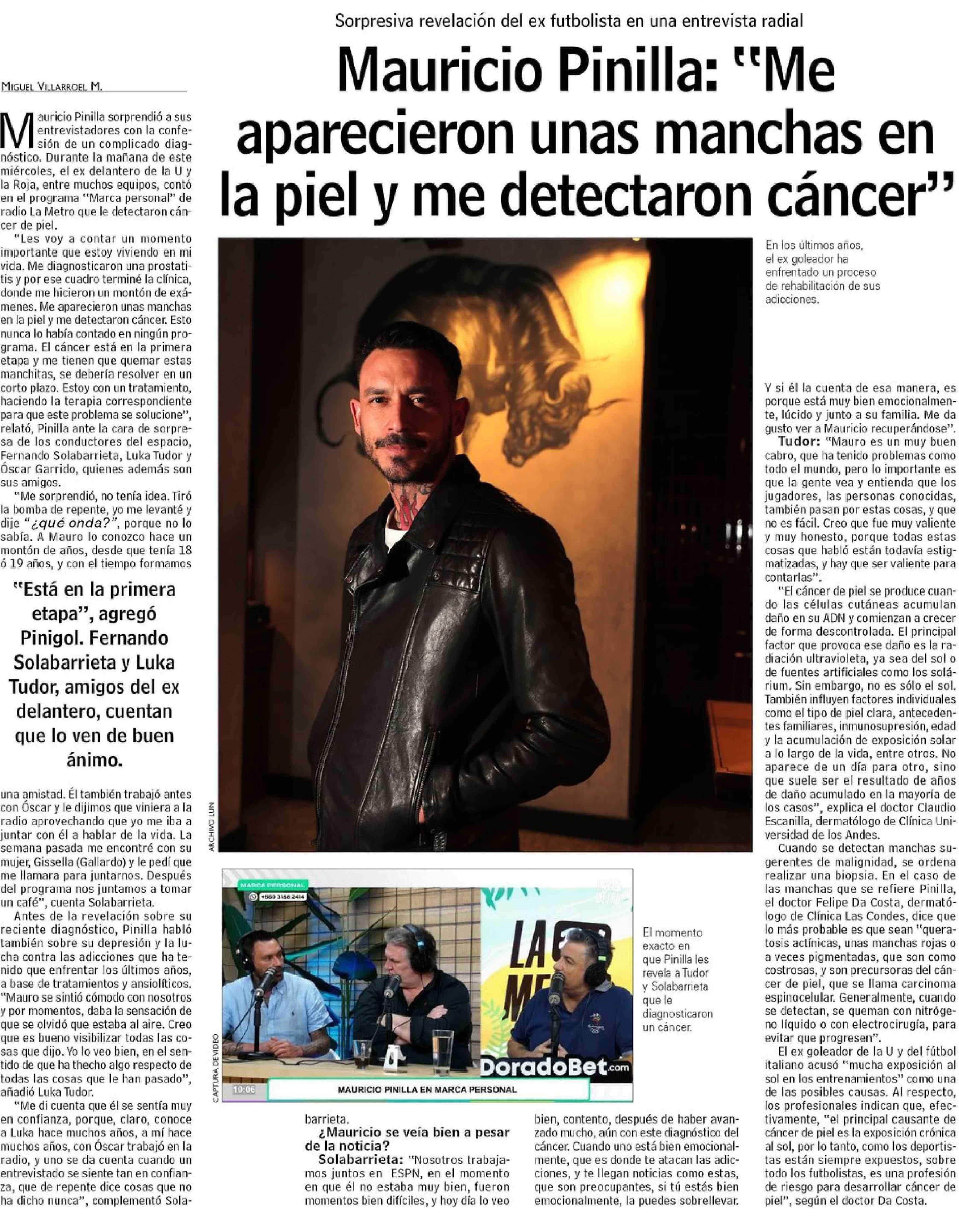 Título: Mauricio Pinilla: "Me aparecieron unas manchas en la piel y me detectaron cancer"