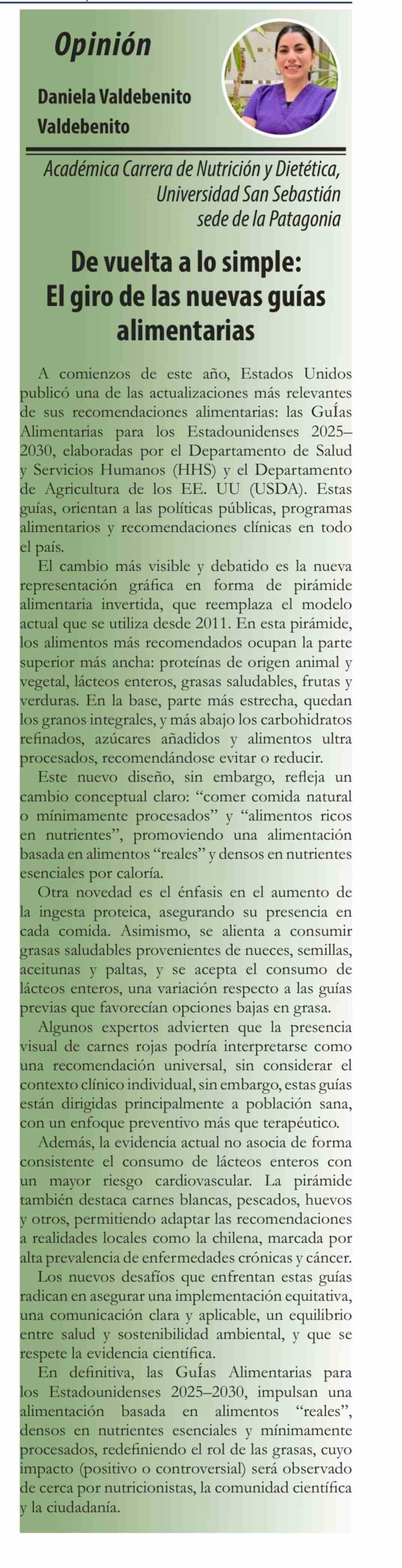 Título: Columnas de Opinión: De vuelta a lo simple: El giro de las nuevas guías alimentarias