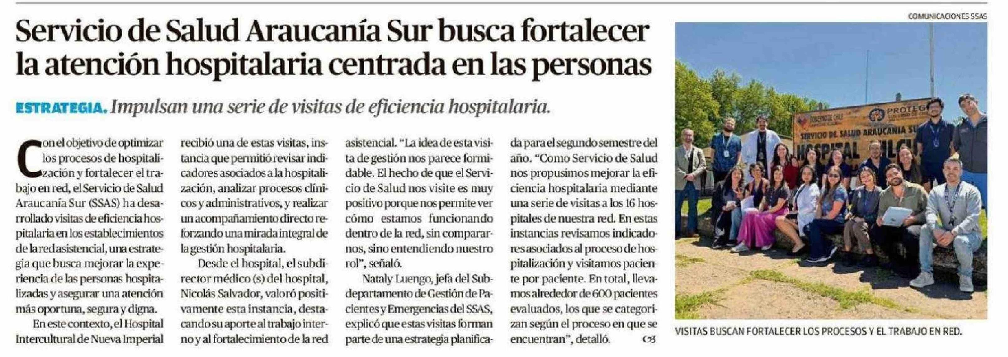 | Título: | Servicio de Salud Araucanía Sur busca fortalecer la atención hospitalaria centrada en las personas |