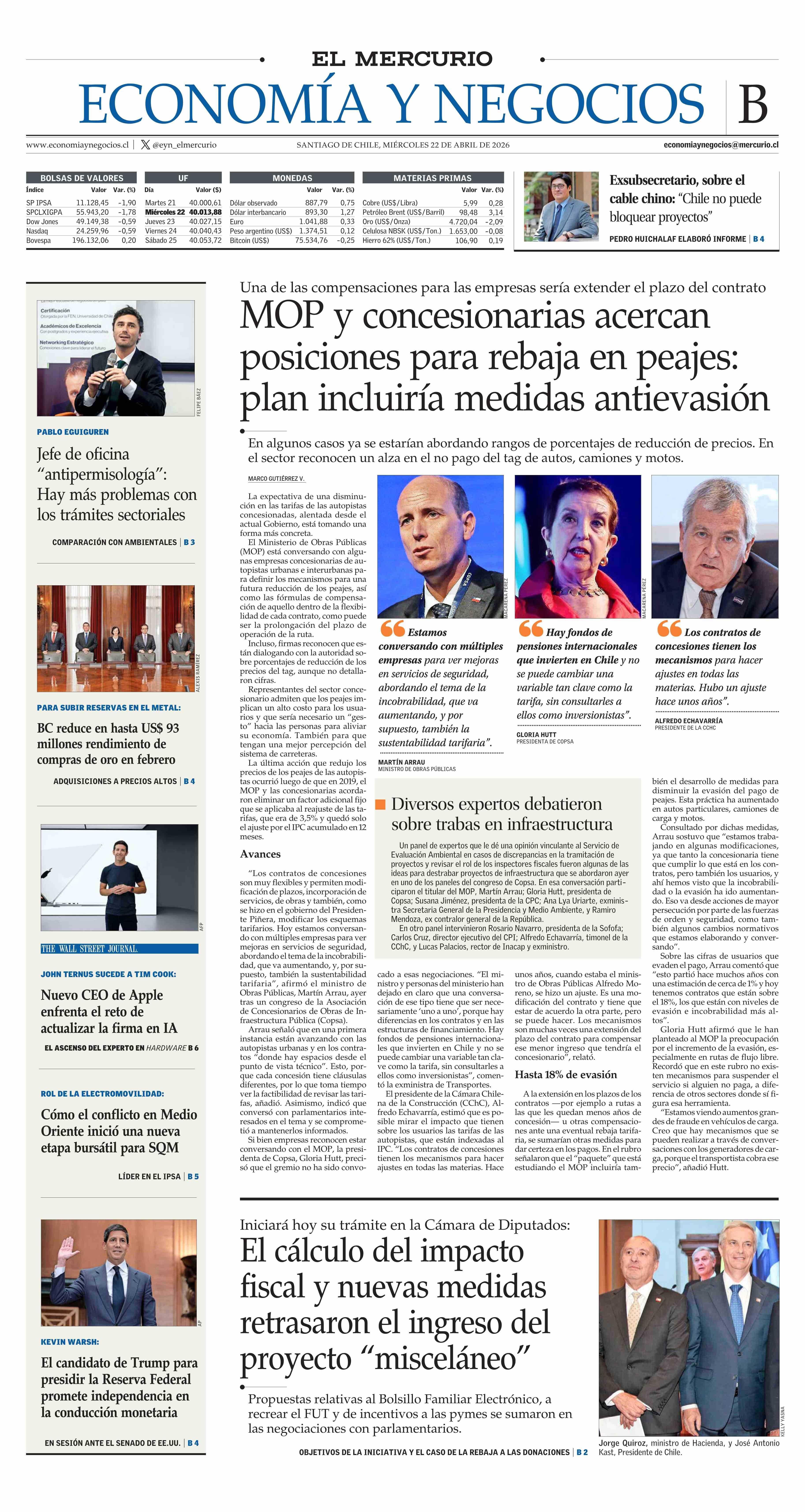 PORTADA EL MERCURIO (B) CHILE 22-04-2026 El Mercurio |