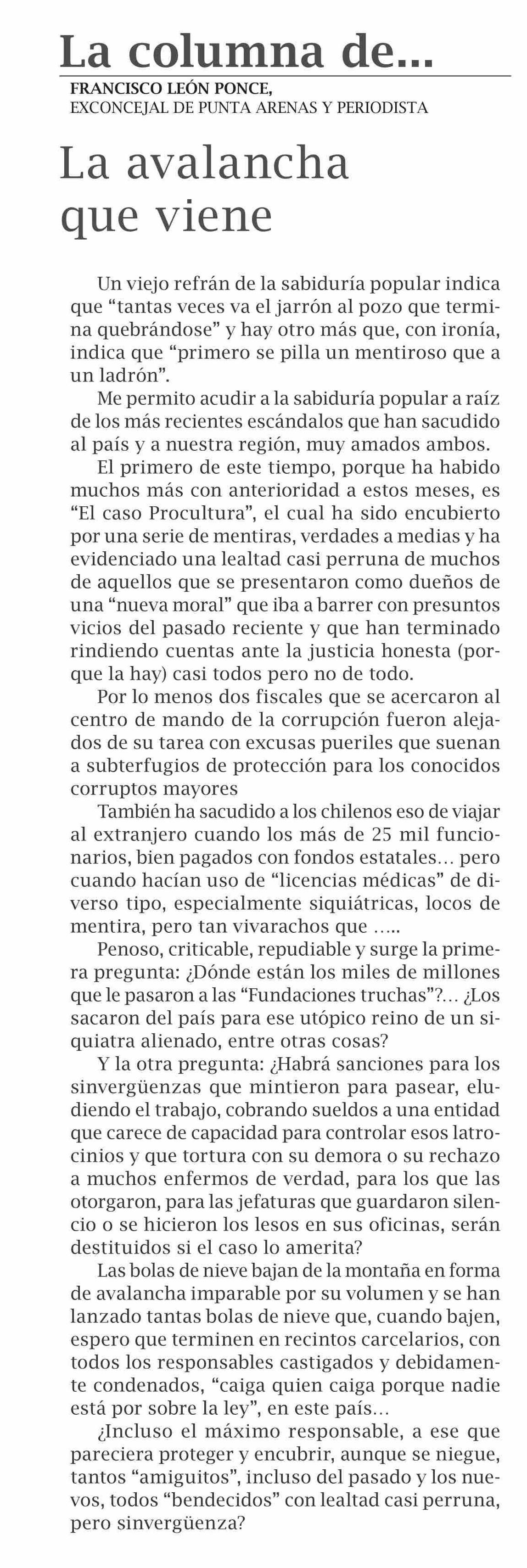 COLUMNAS DE OPINIÓN: La avalancha que viene 26-05-2025 El Pingüino |