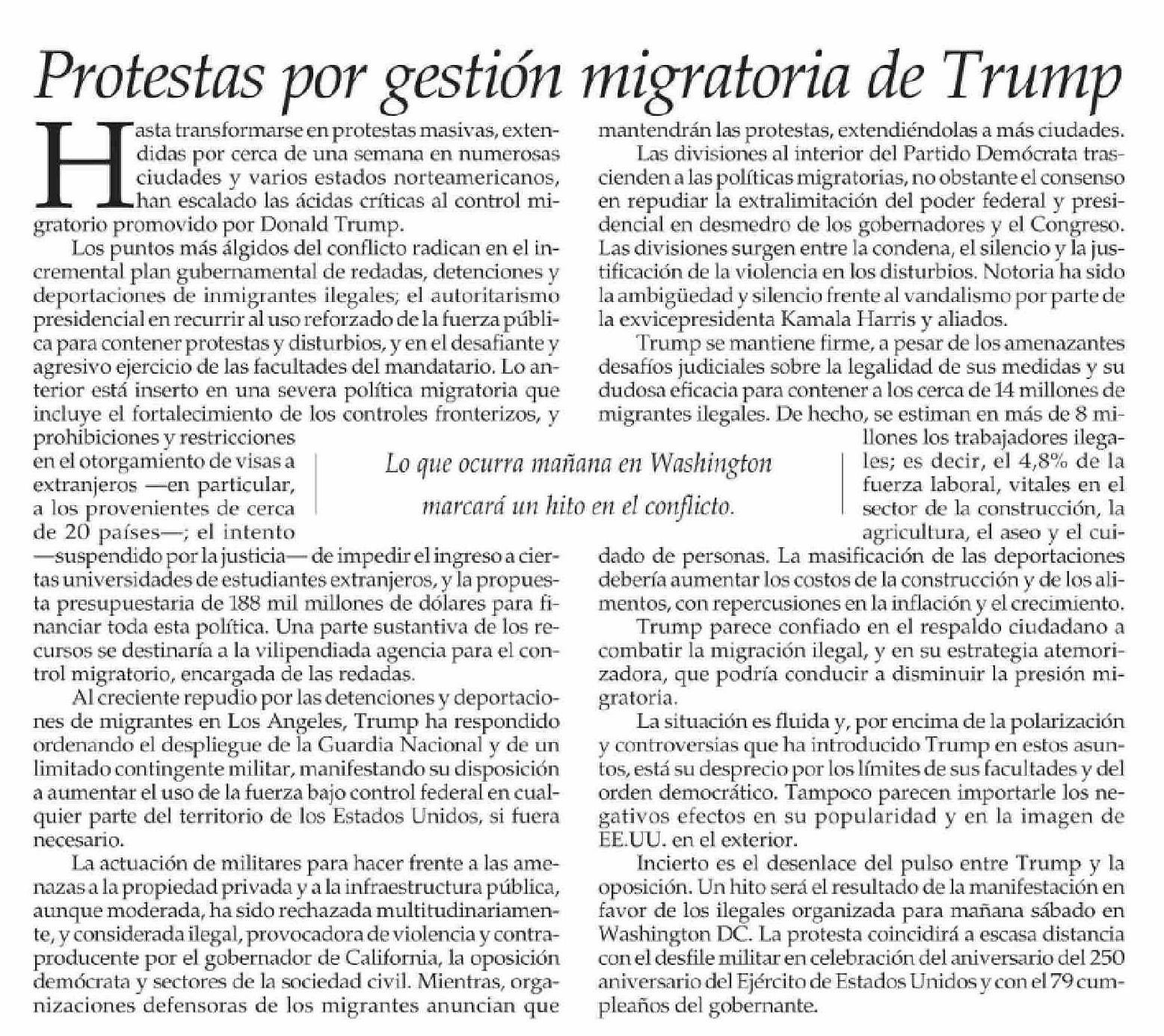 EDITORIAL: Protestas por gestión migratoria de Trump 13-06-2025 El Mercurio |