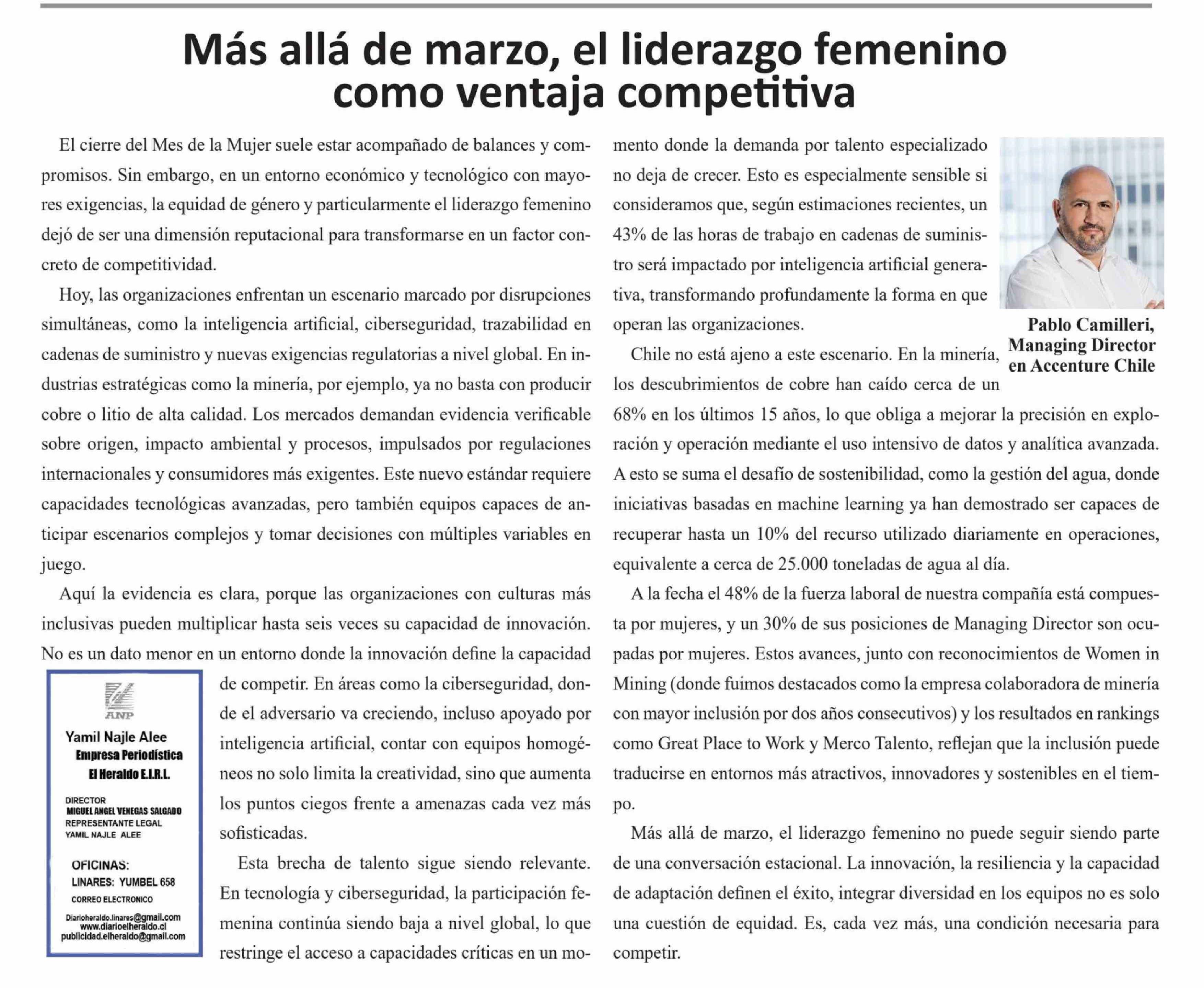 Título: COLUMNAS DE OPINIÓN: Más allá de marzo, el liderazgo femenino como ventaja competitiva