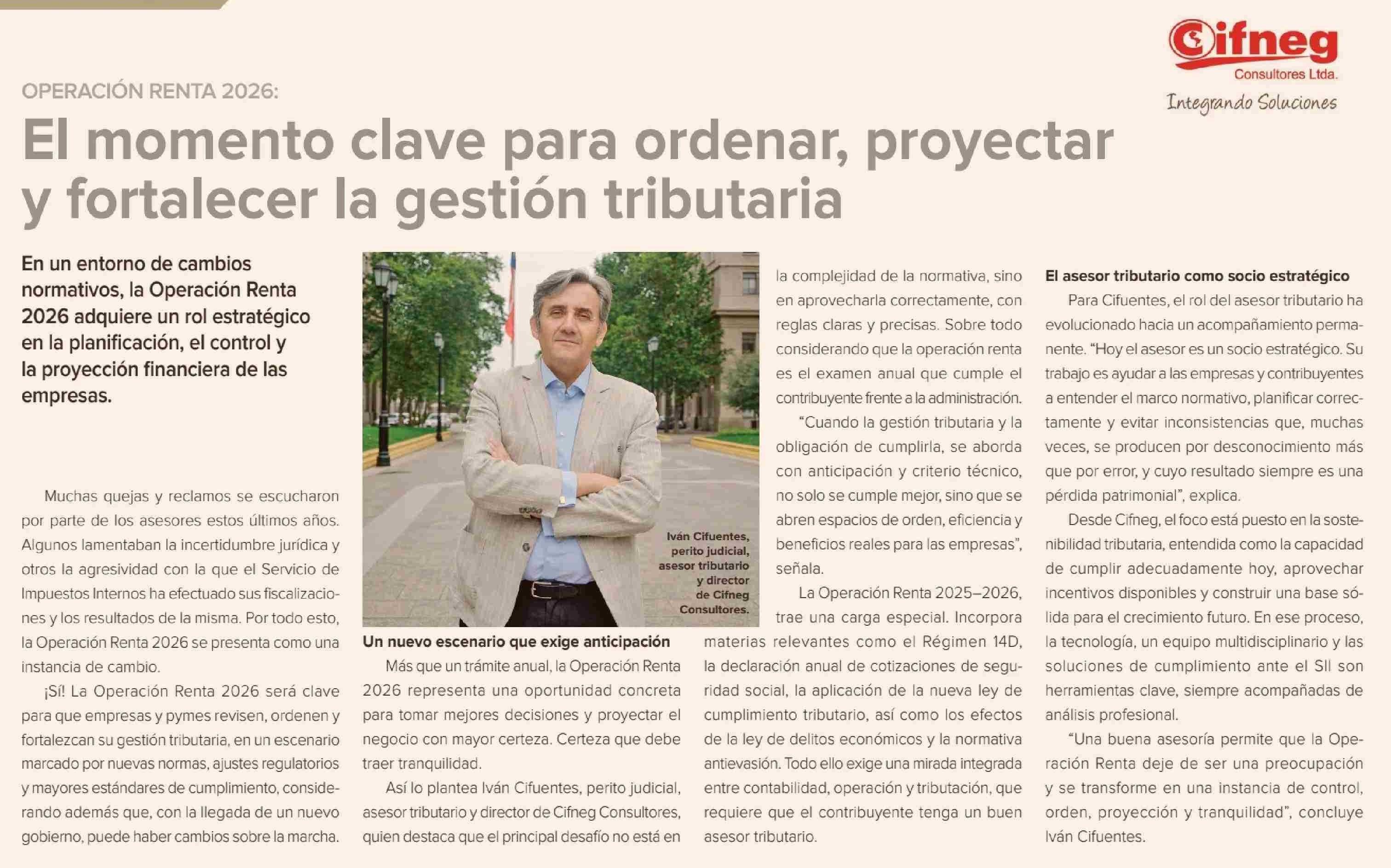 El momento clave para ordenar, proyectar y fortalecer la gestión tributaria 19-01-2026 Diario Financiero |