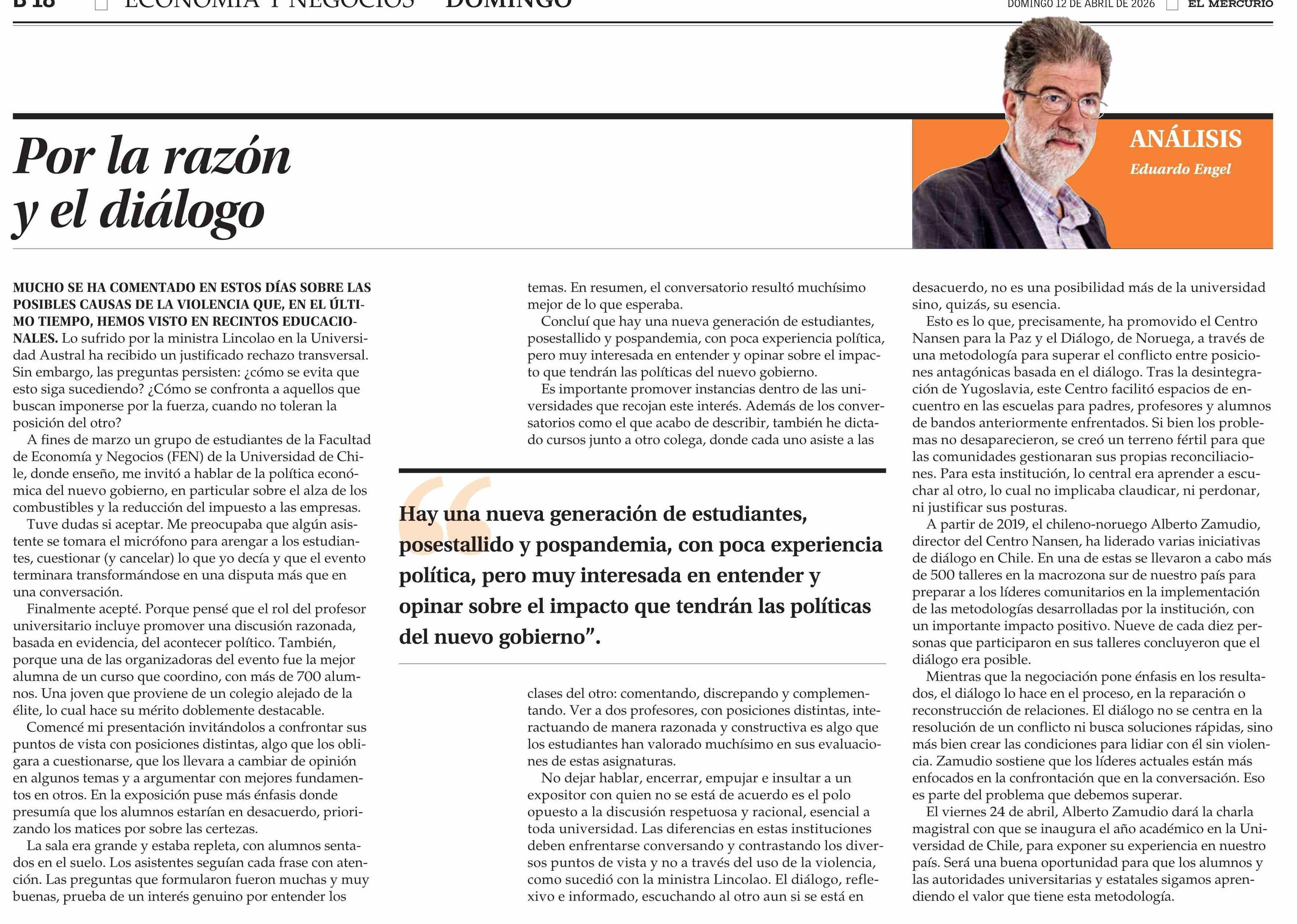 Columnas de Opinión: Por la razón y el diálogo 12-04-2026 El Mercurio |